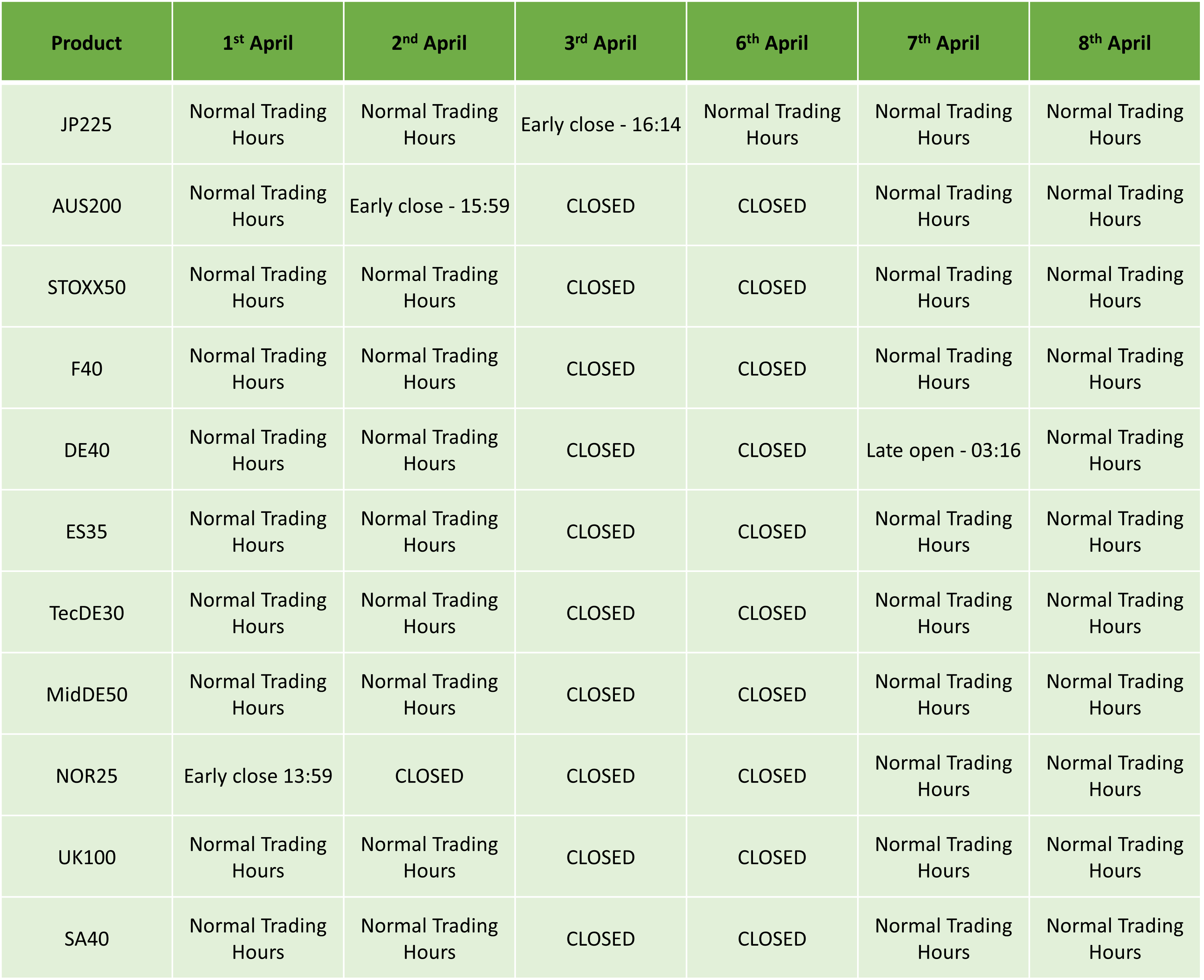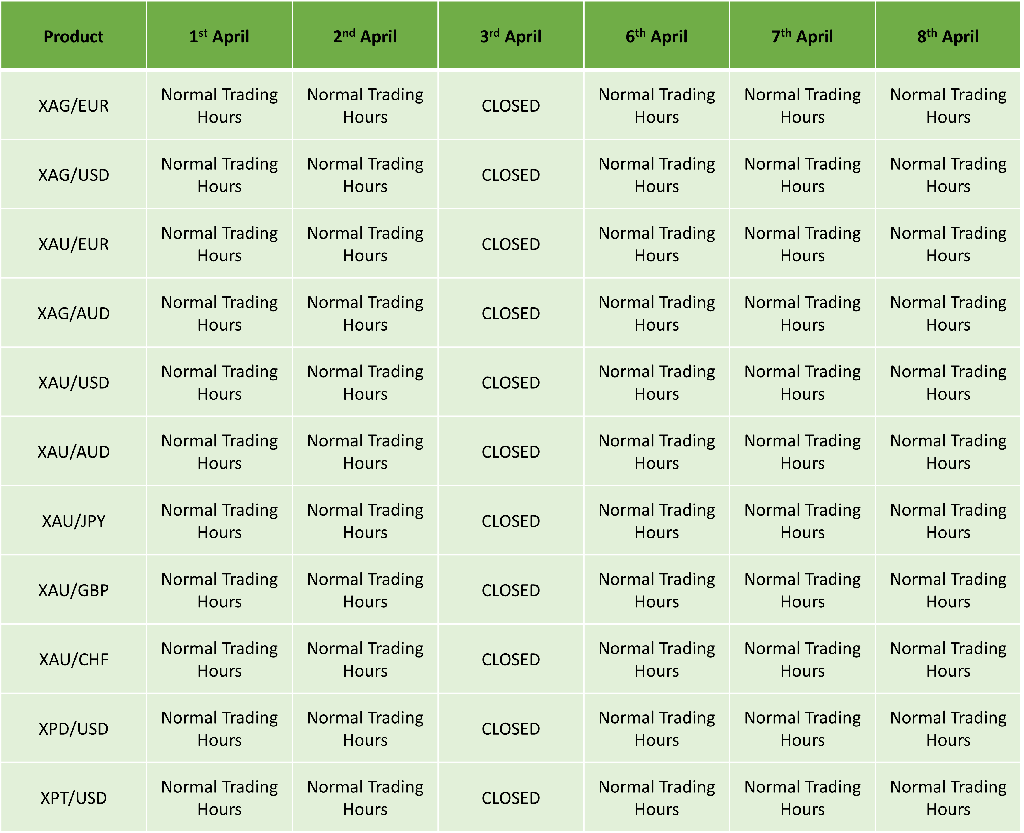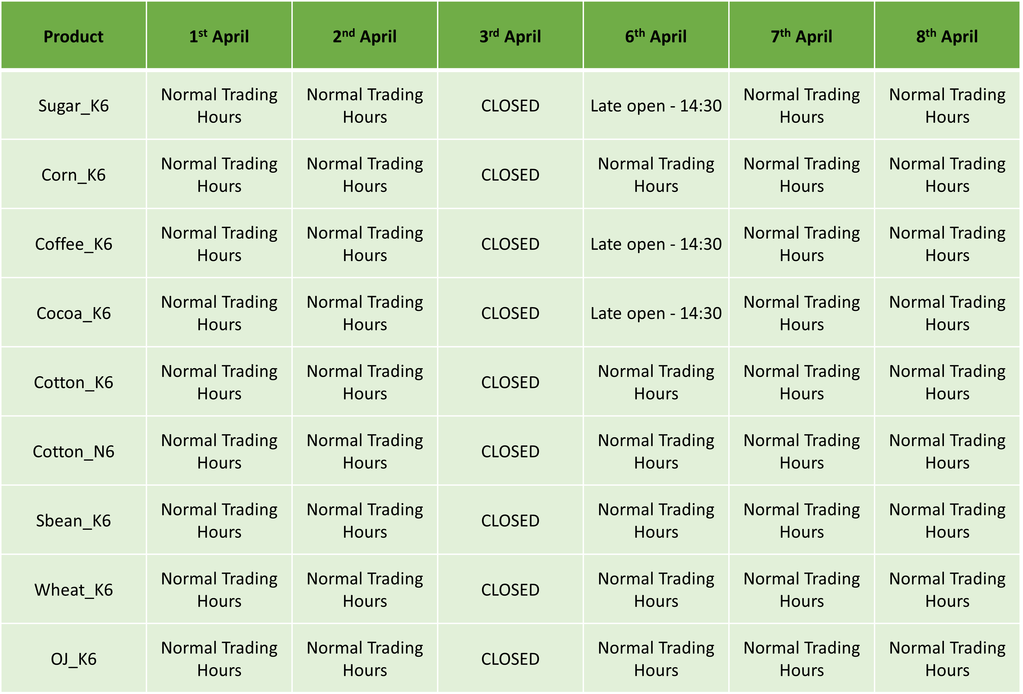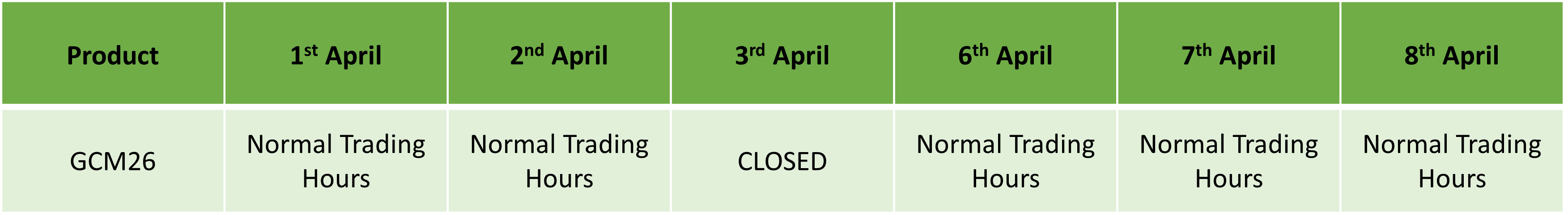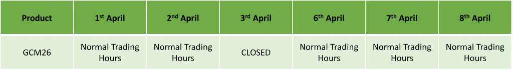 Please find our updated Trading schedule and general information related to the Easter Holidays Starting on Wednesday, 1 April, 2026.