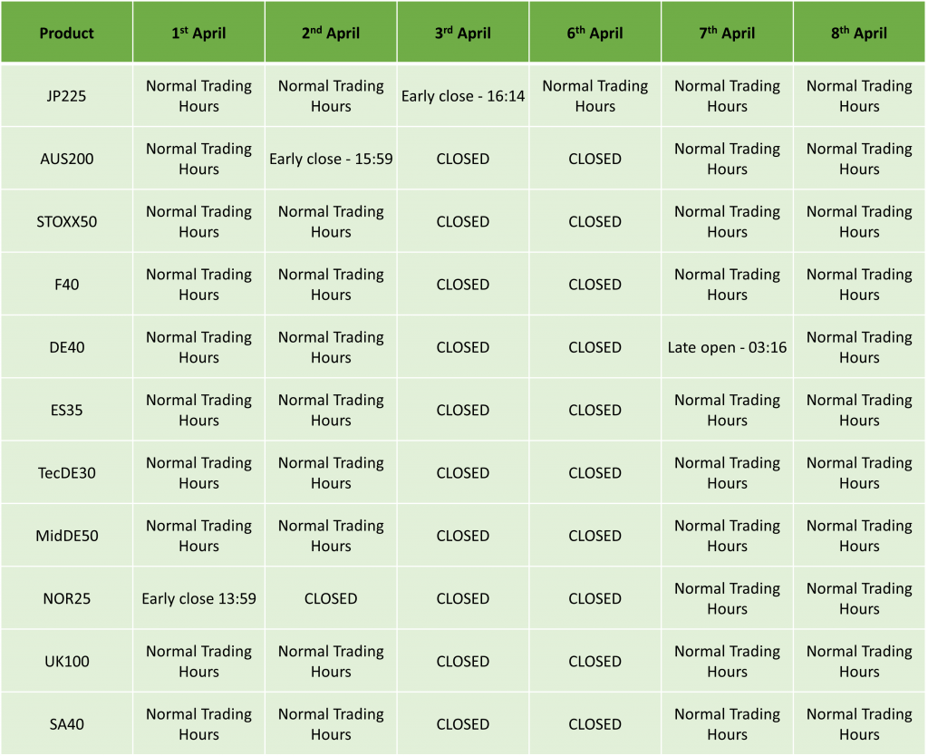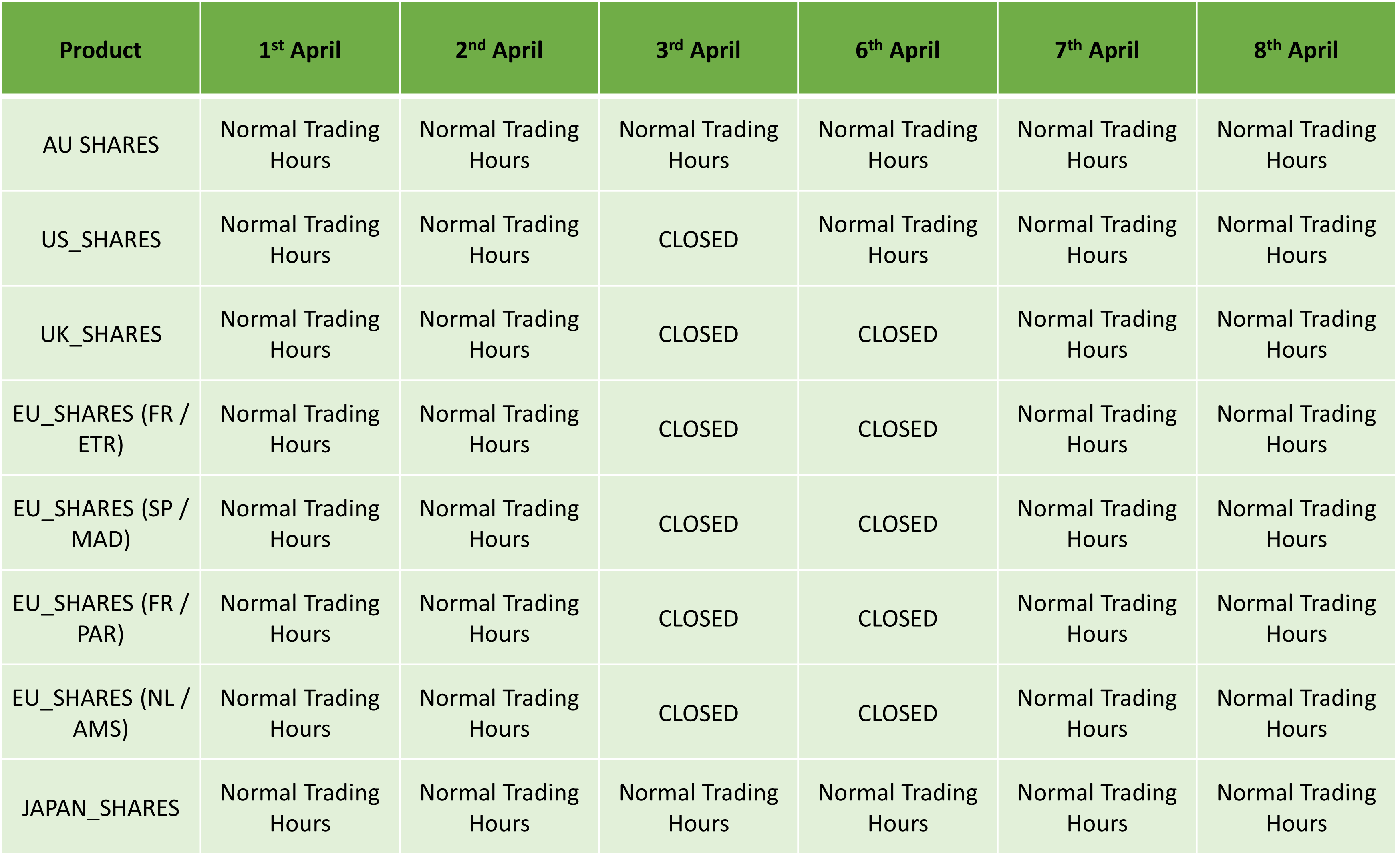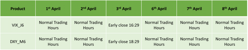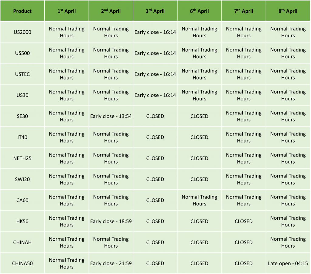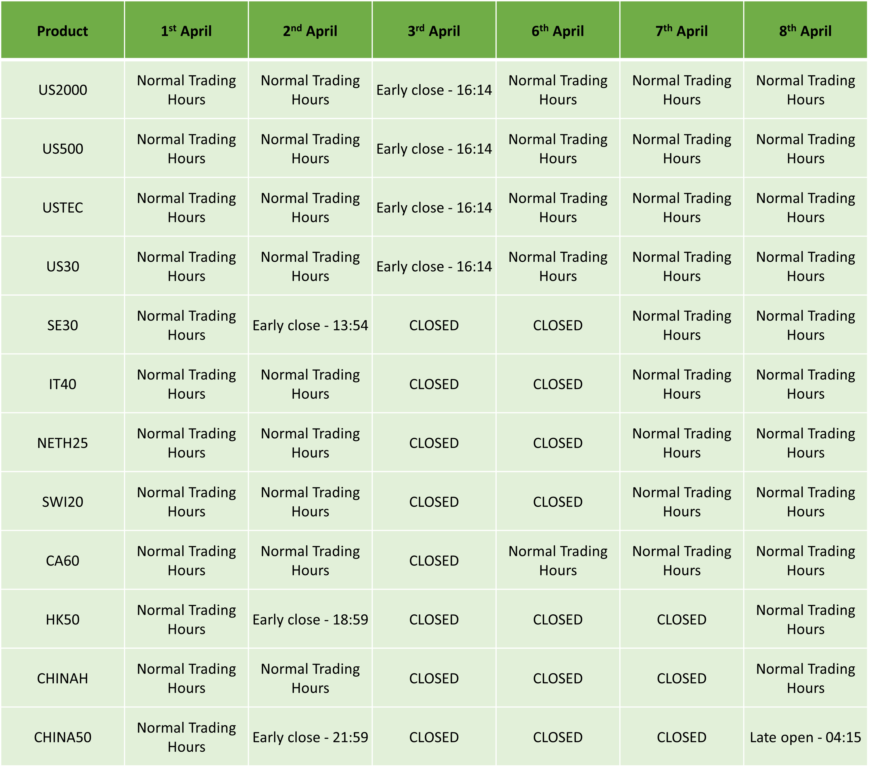 Please find our updated Trading schedule and general information related to the Easter Holidays Starting on Wednesday, 1 April, 2026.
