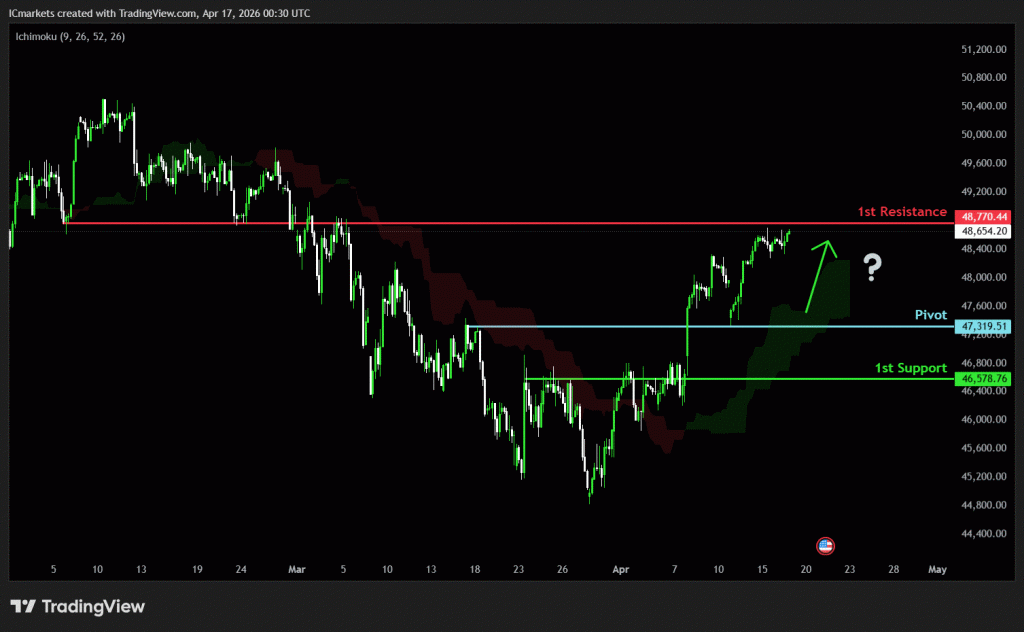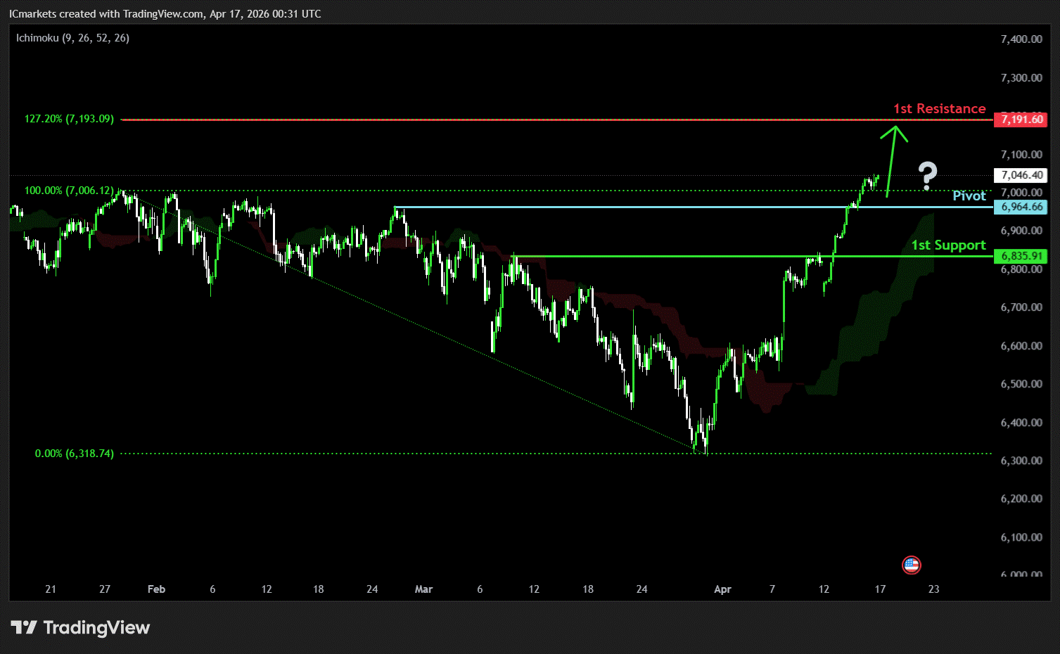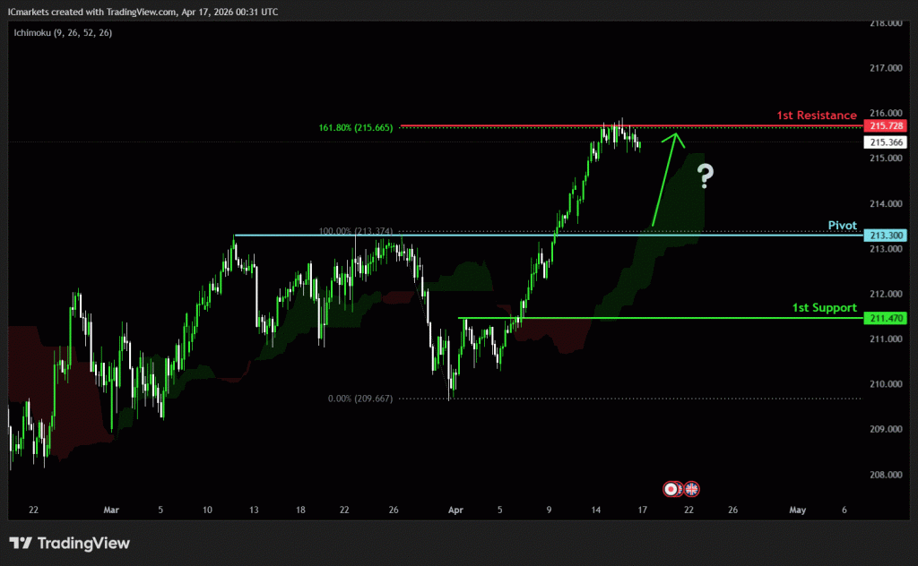 The price could see a short-term pullback toward the pivot before rising again toward the 1st resistance.