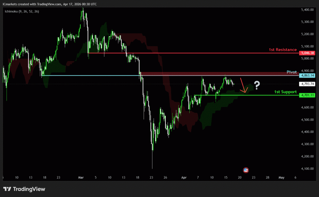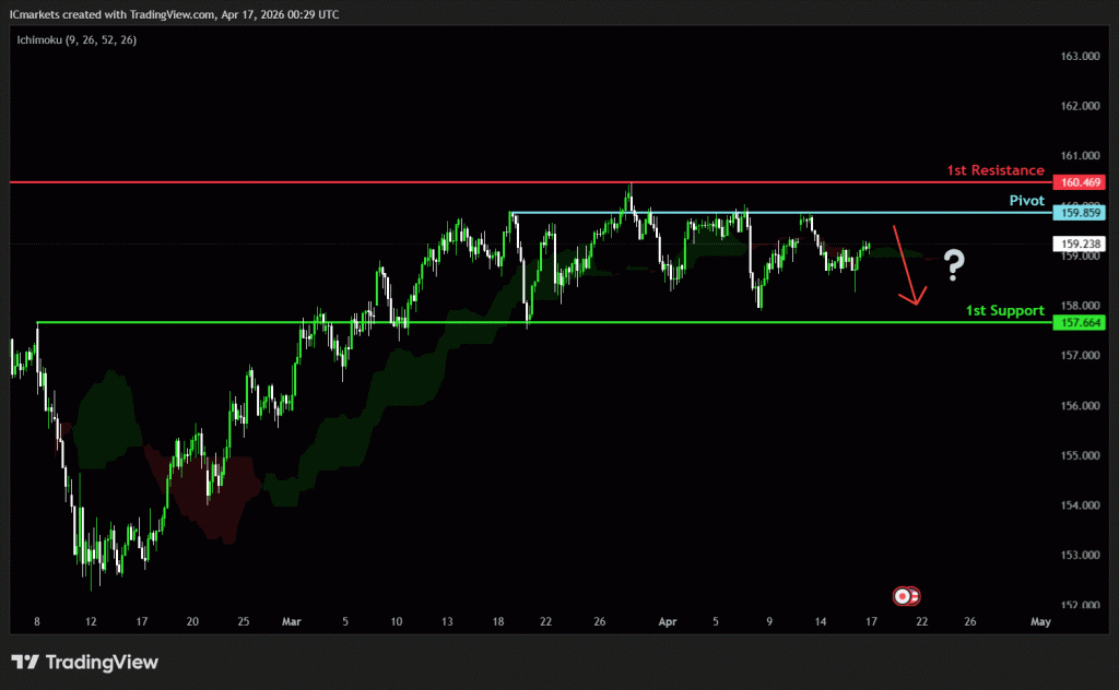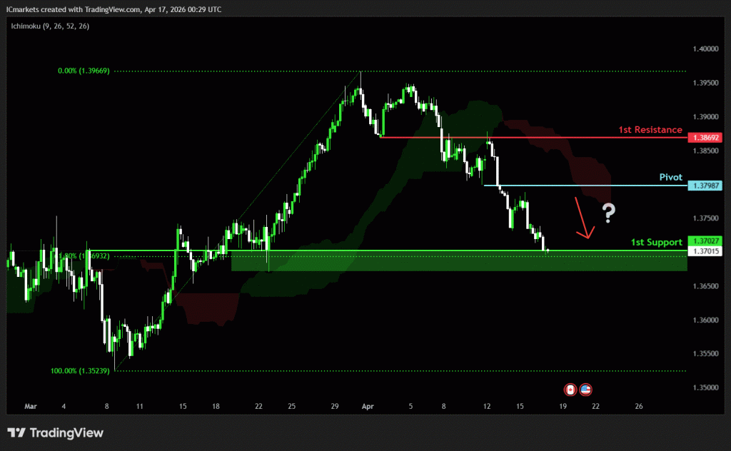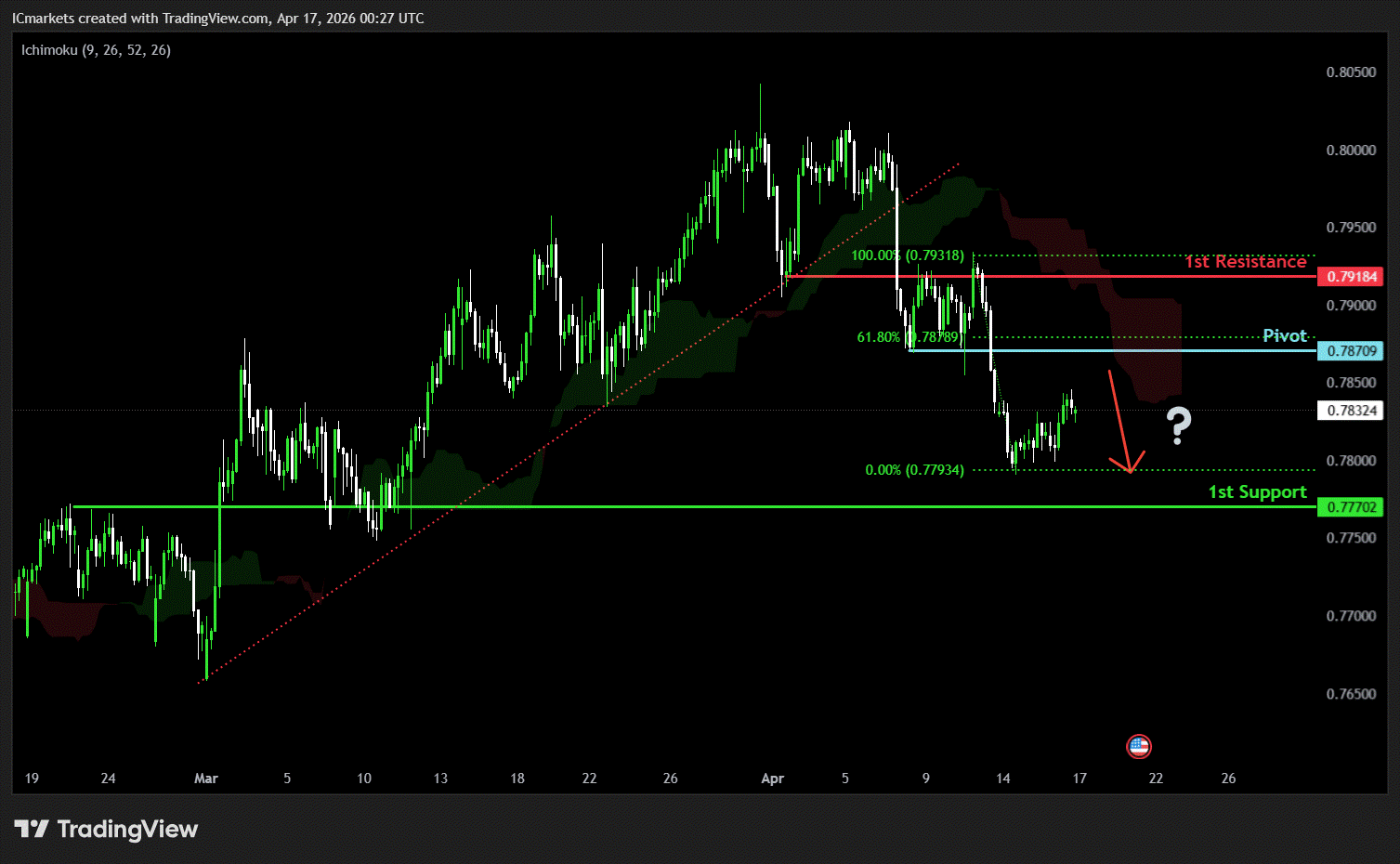 The price could see a short-term pullback toward the pivot before continuing its bearish move down toward the 1st support.