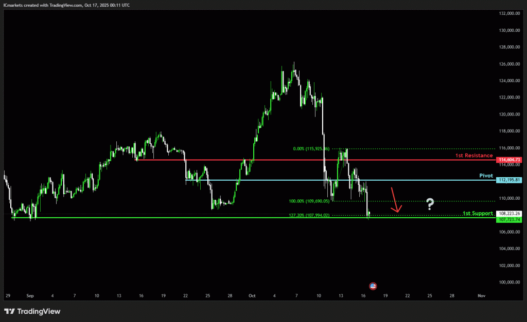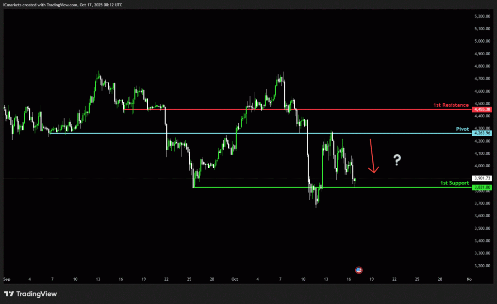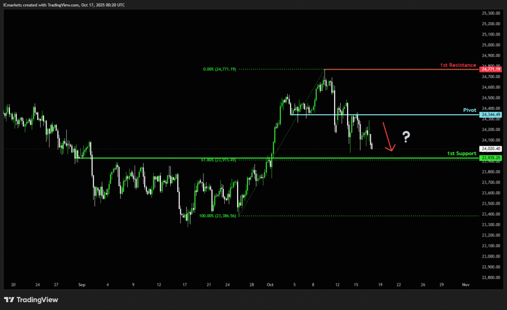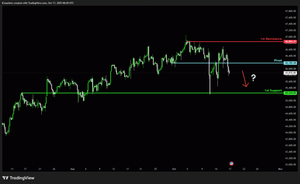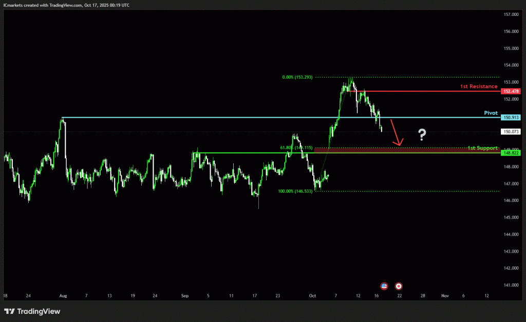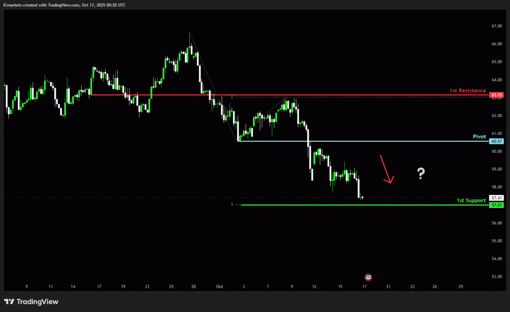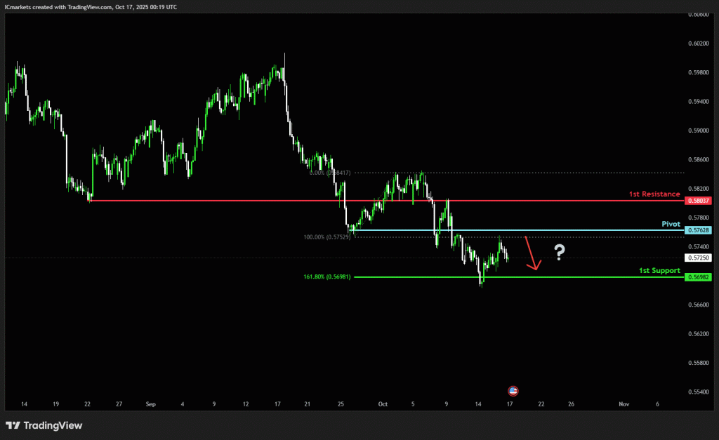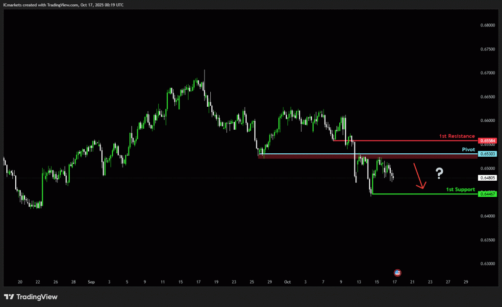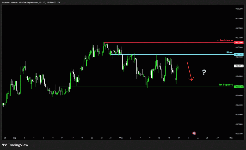 The price could see a short-term pullback toward the pivot before continuing its bearish move down toward the 1st support.