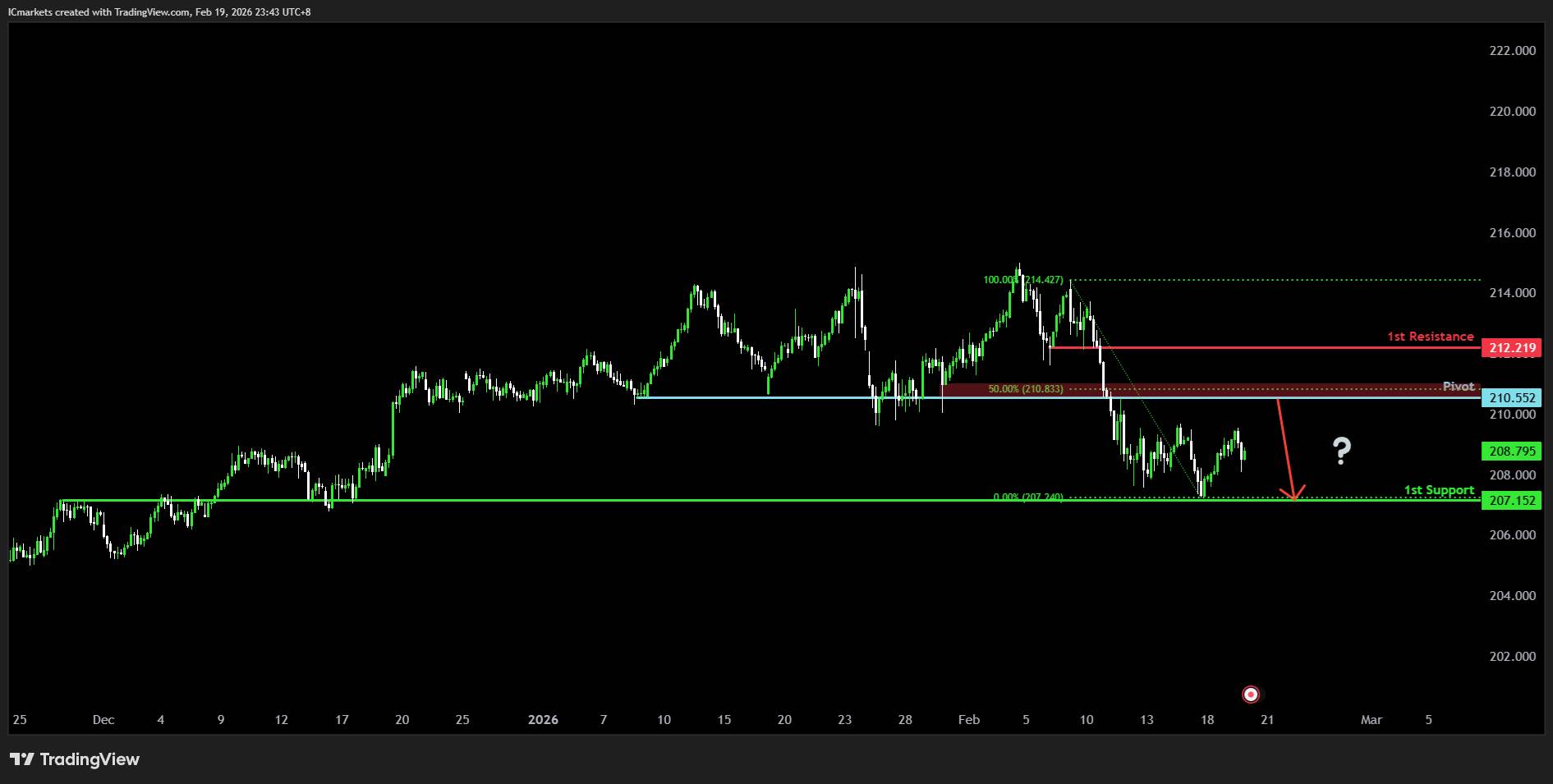 The price could see a short-term pullback toward the pivot, where the price may reverse and fall toward the 1st support.