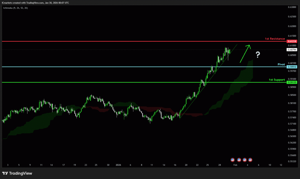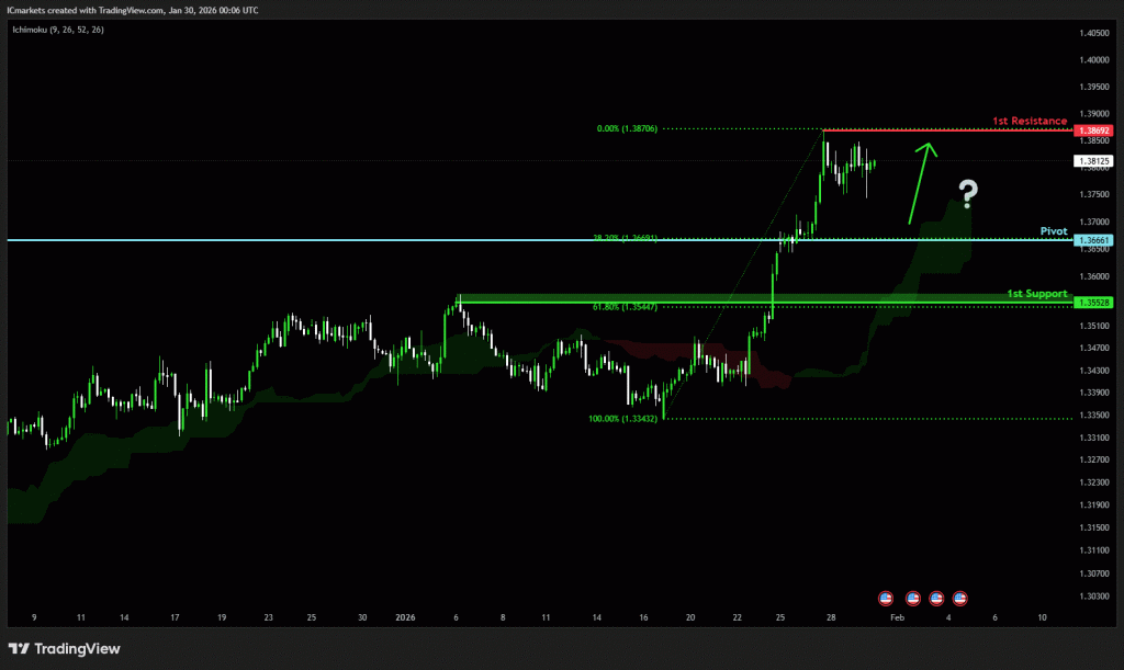 The price could see a short-term pullback toward the pivot before continuing its bullish move toward the 1st resistance