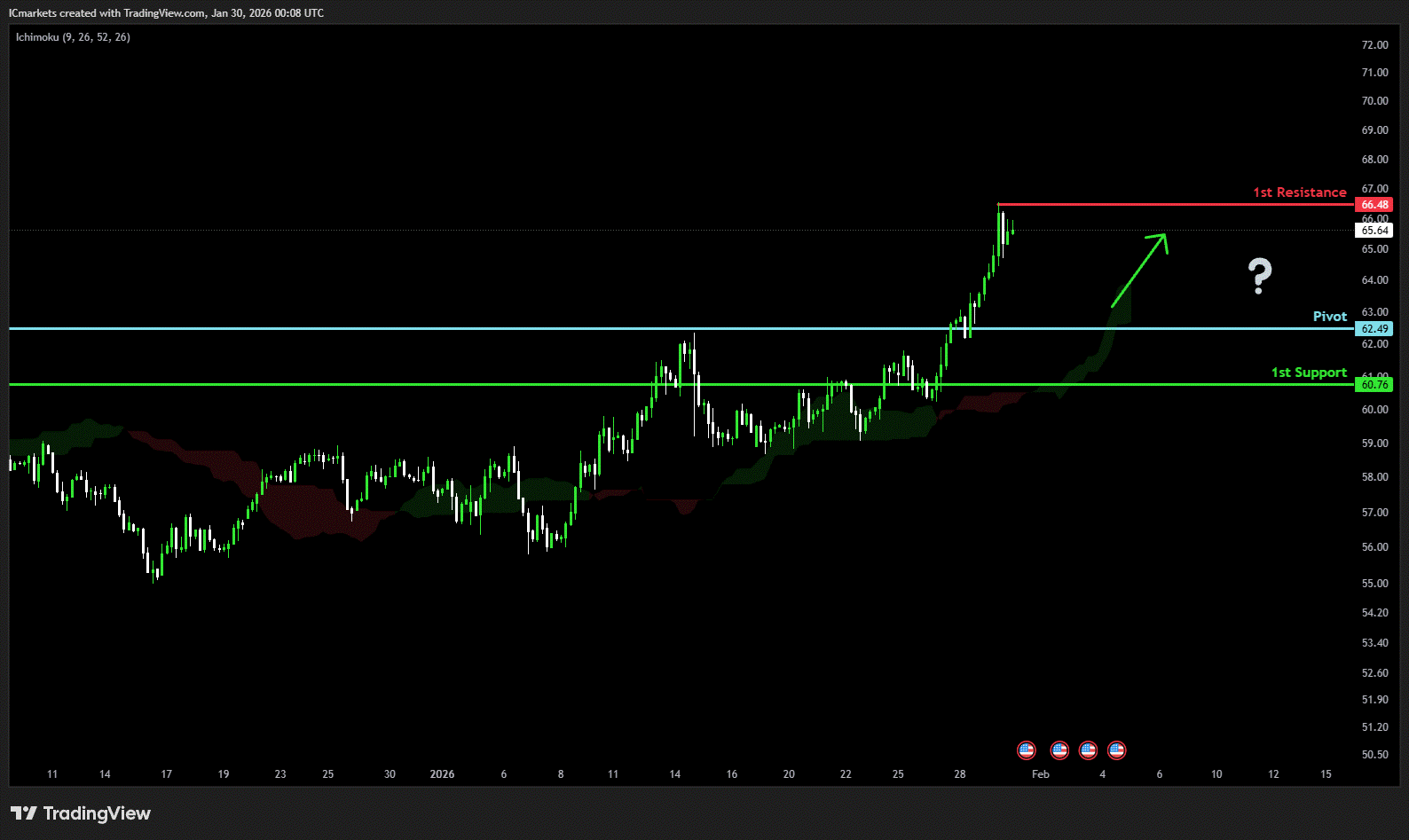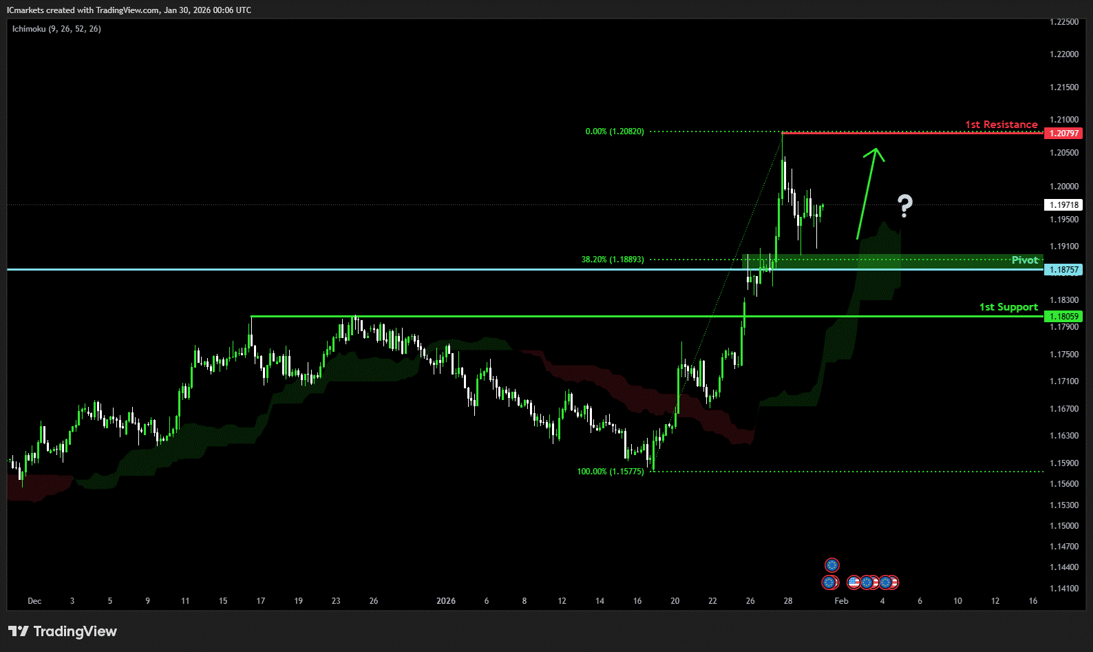 The price could see a short-term pullback toward the pivot before continuing its bullish move toward the 1st resistance
