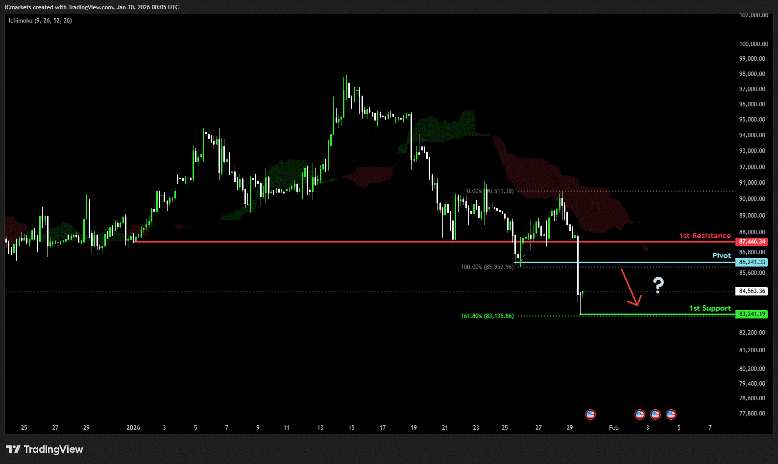 1st resistance: 87,446.34