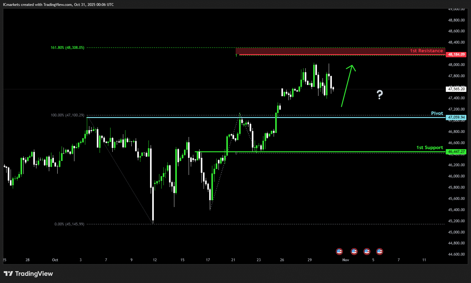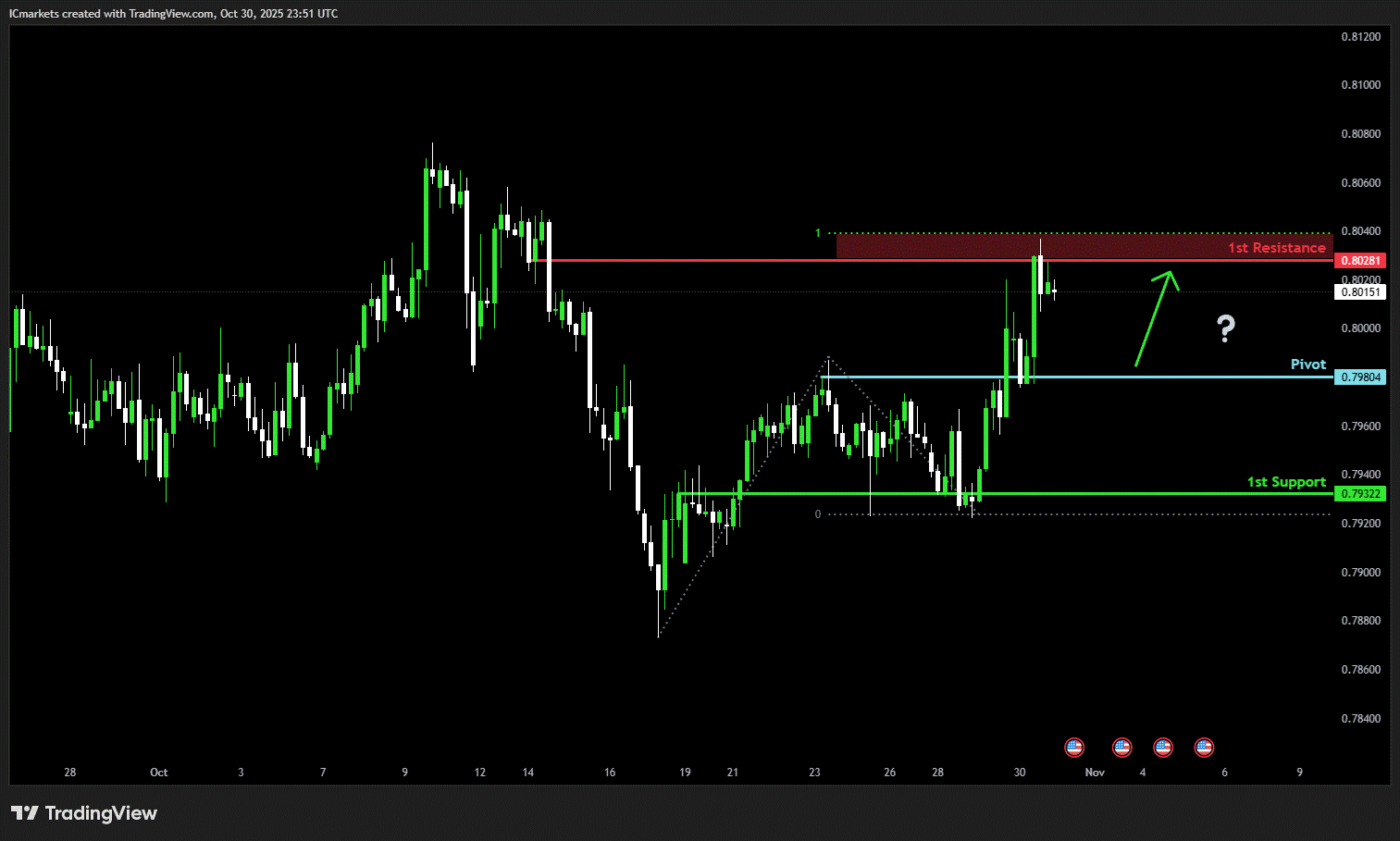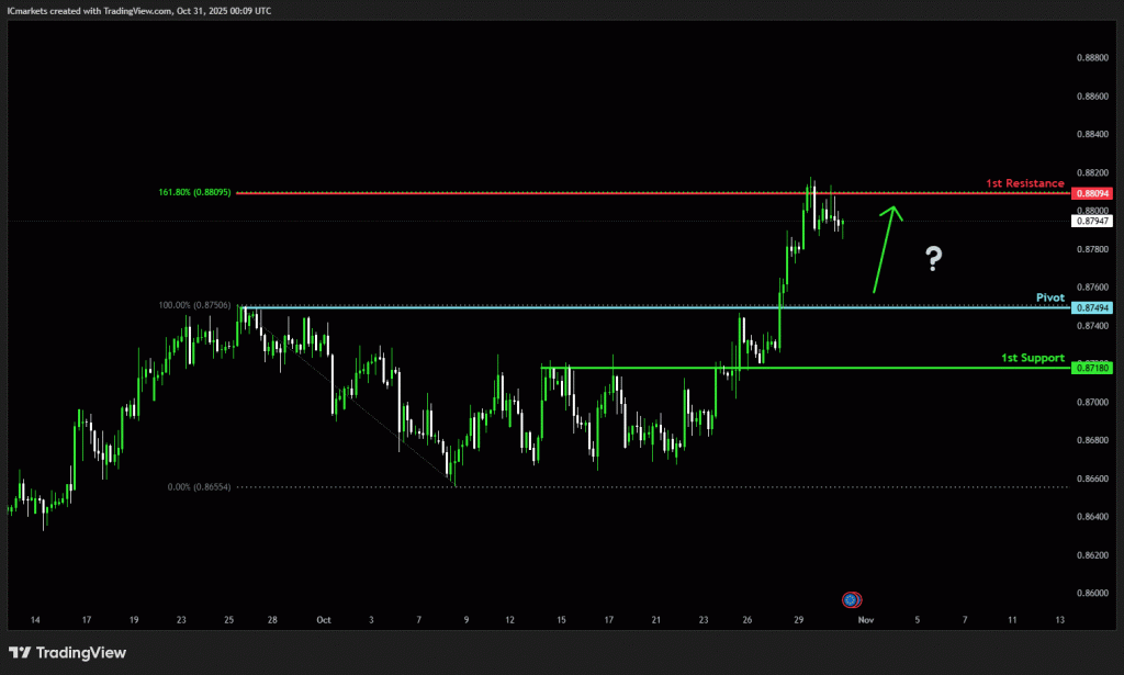 The price could see a short-term pullback toward the pivot before rising again toward the 1st resistance.