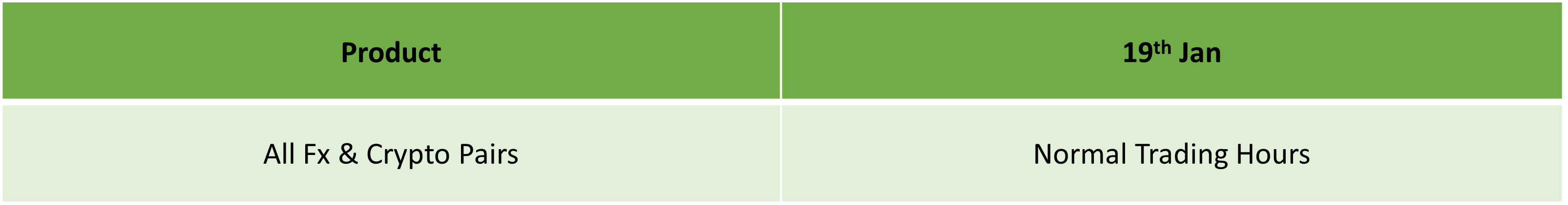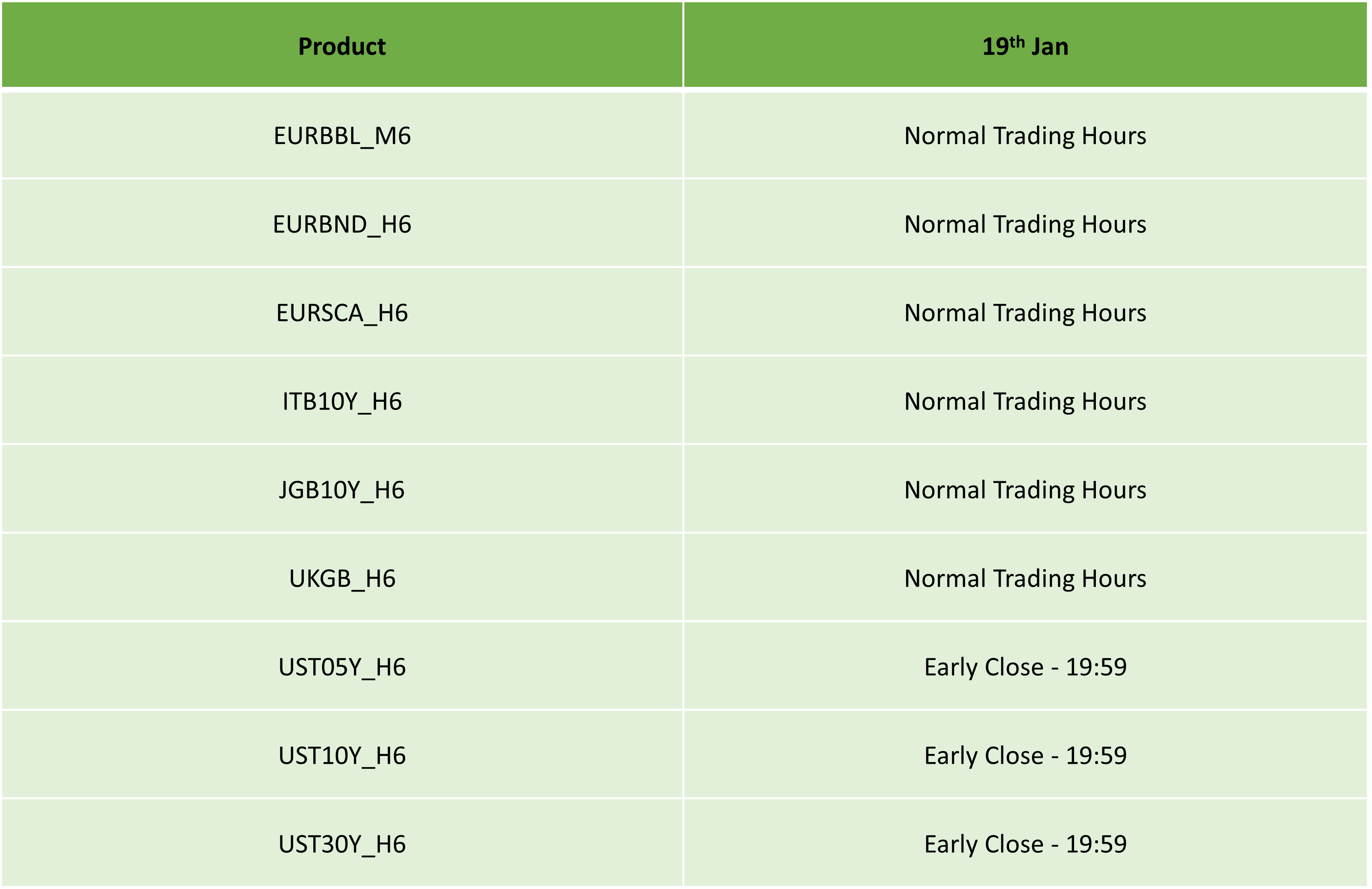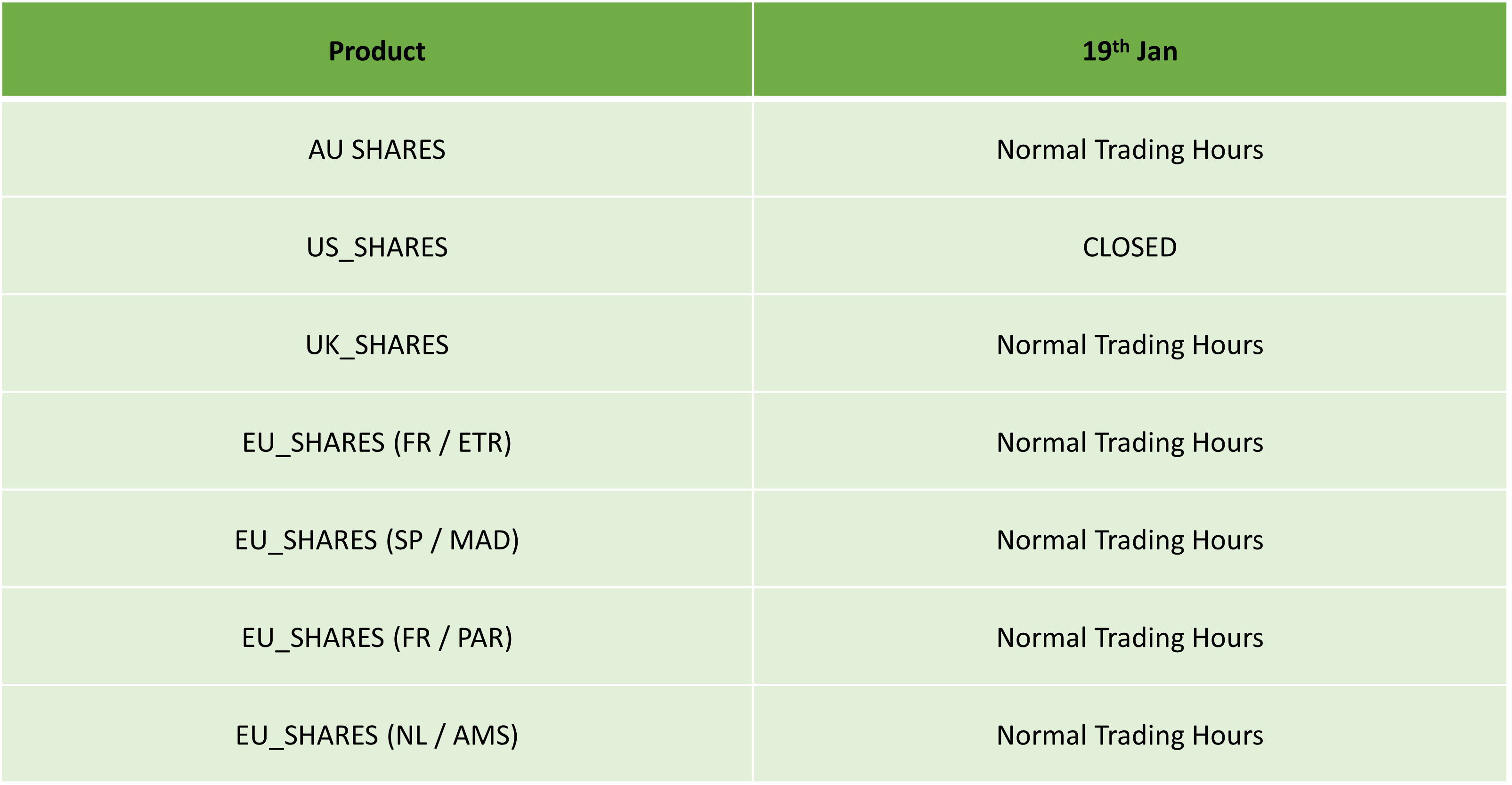 Please find our updated Trading schedule and general information related to the Martin Luther King Day on Monday, 19 January, 2026