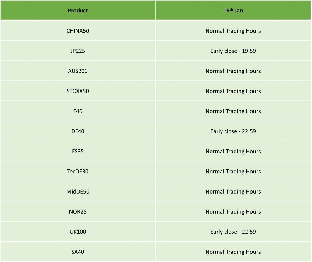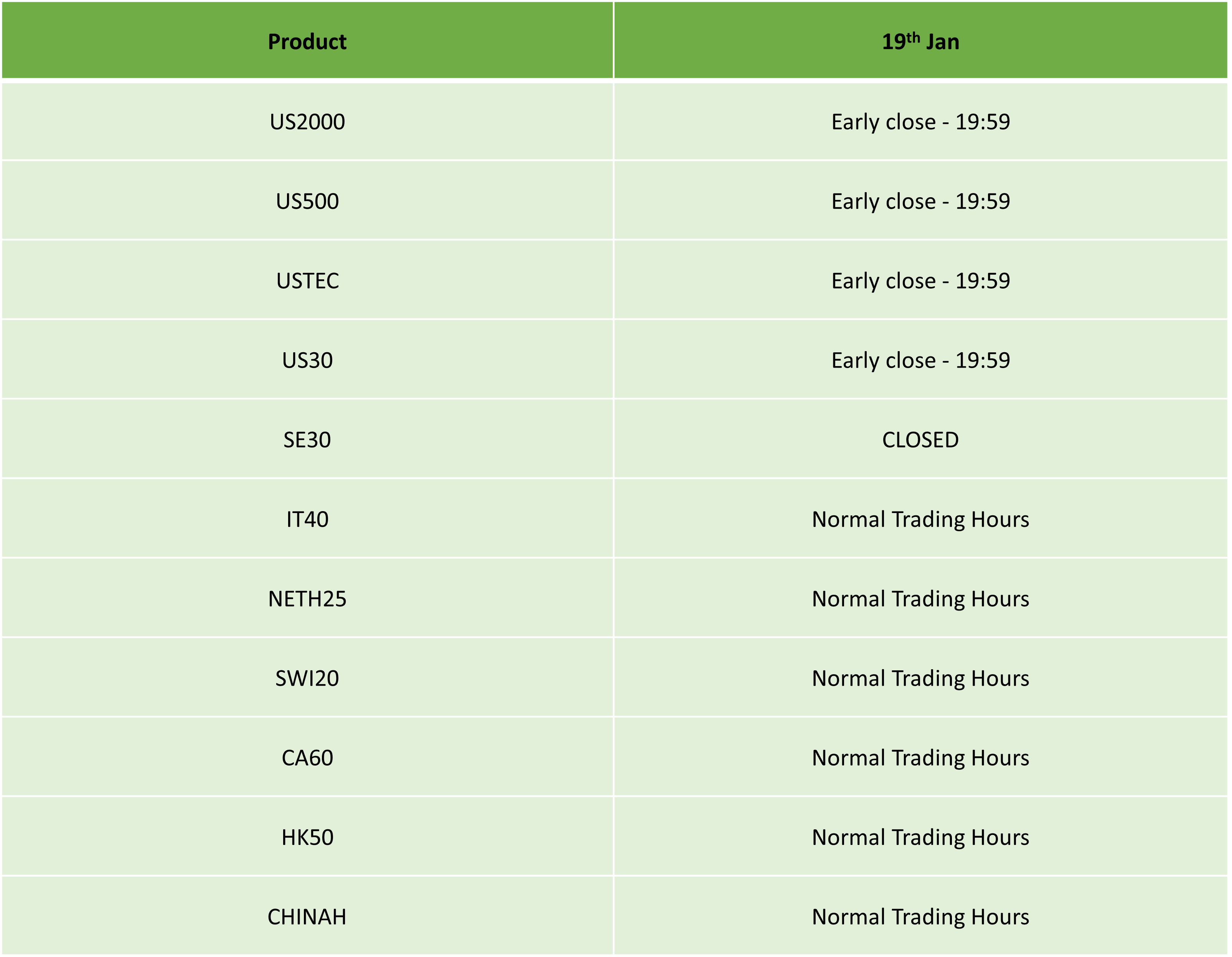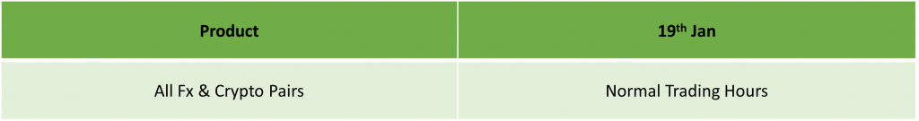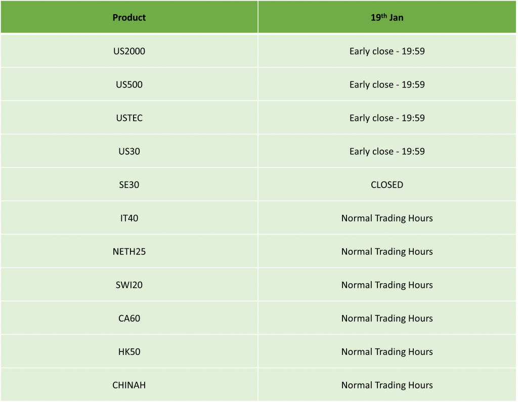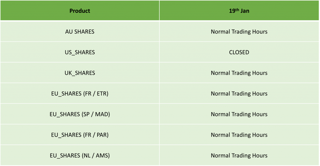 Please find our updated Trading schedule and general information related to the Martin Luther King Day on Monday, 19 January, 2026