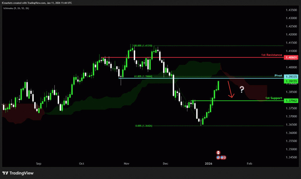 The price could see a short-term pullback toward the pivot before continuing its bearish move down toward the 1st support.