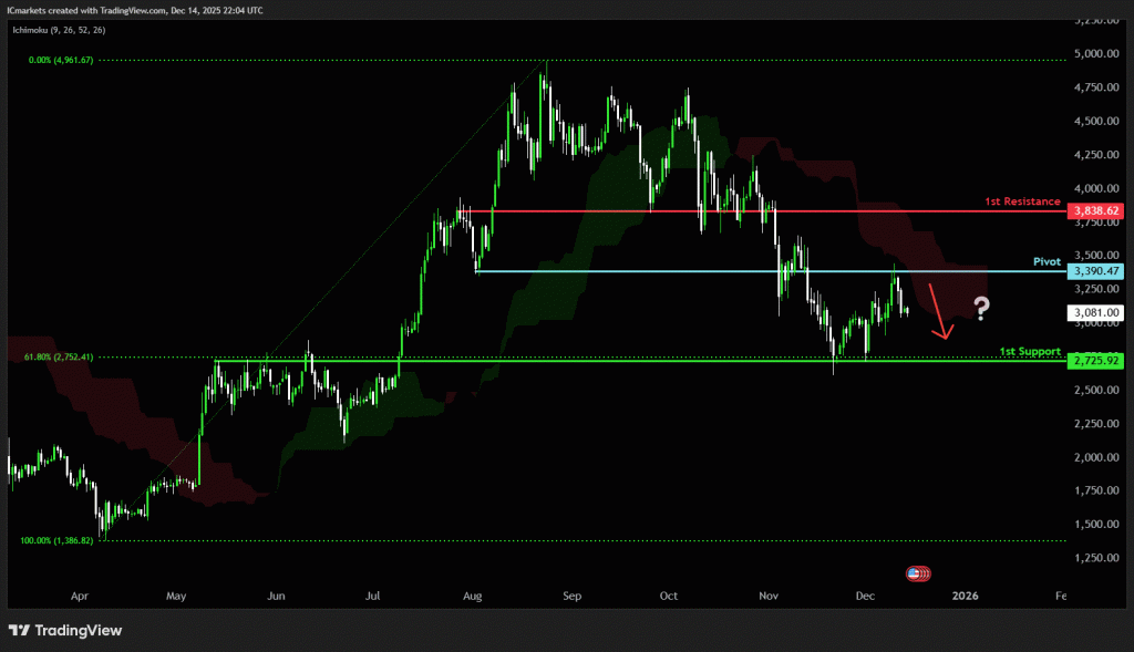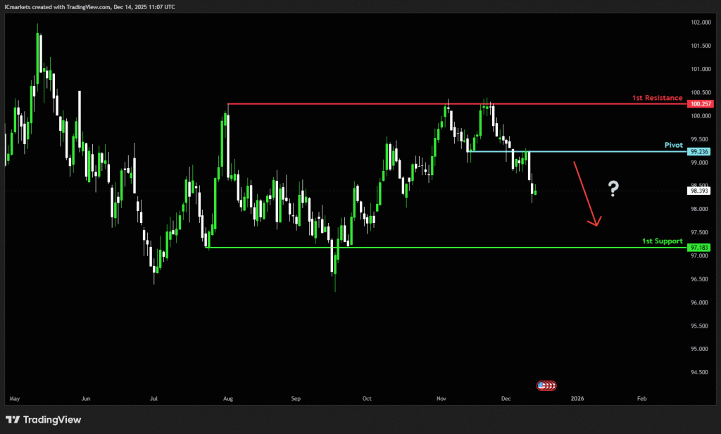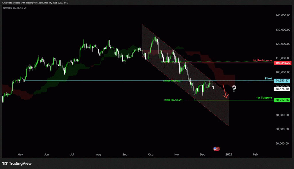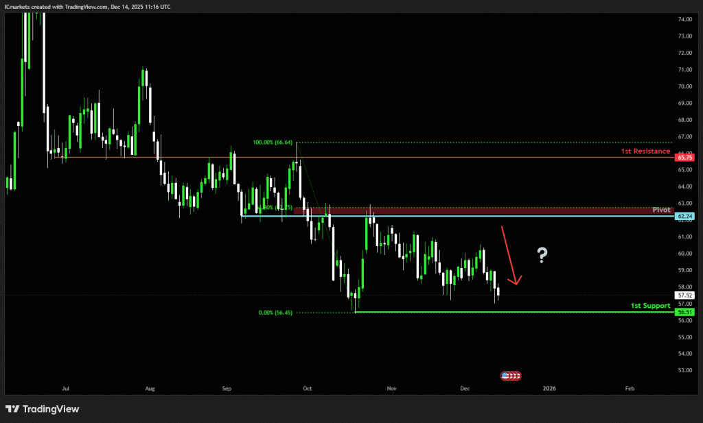 The price could see a short-term pullback toward the pivot before continuing its bearish move down toward the 1st support.