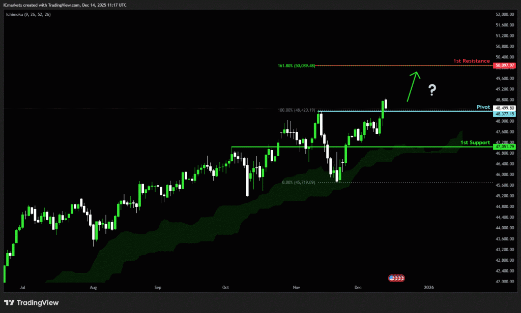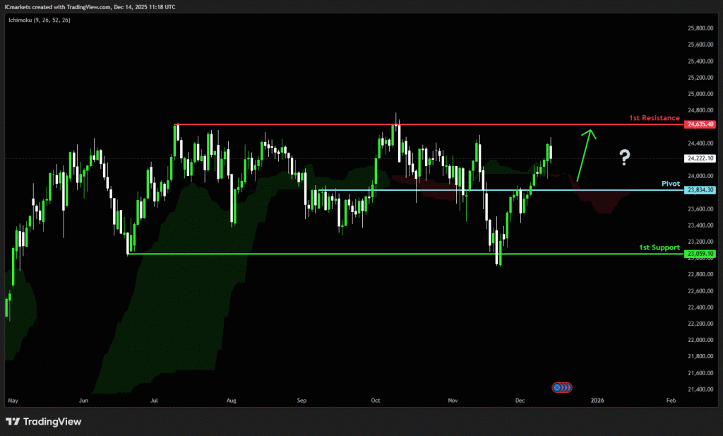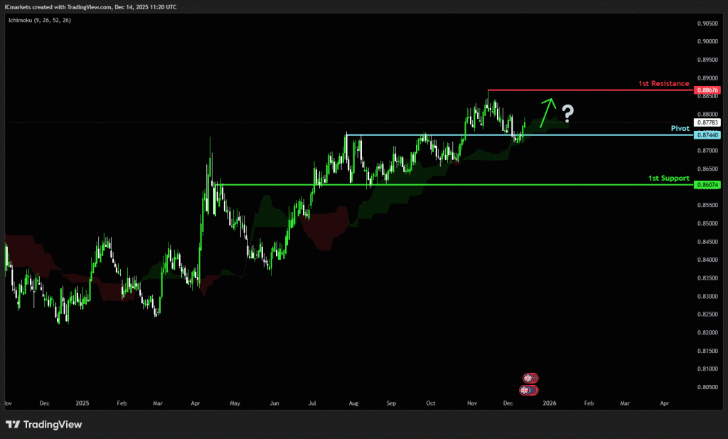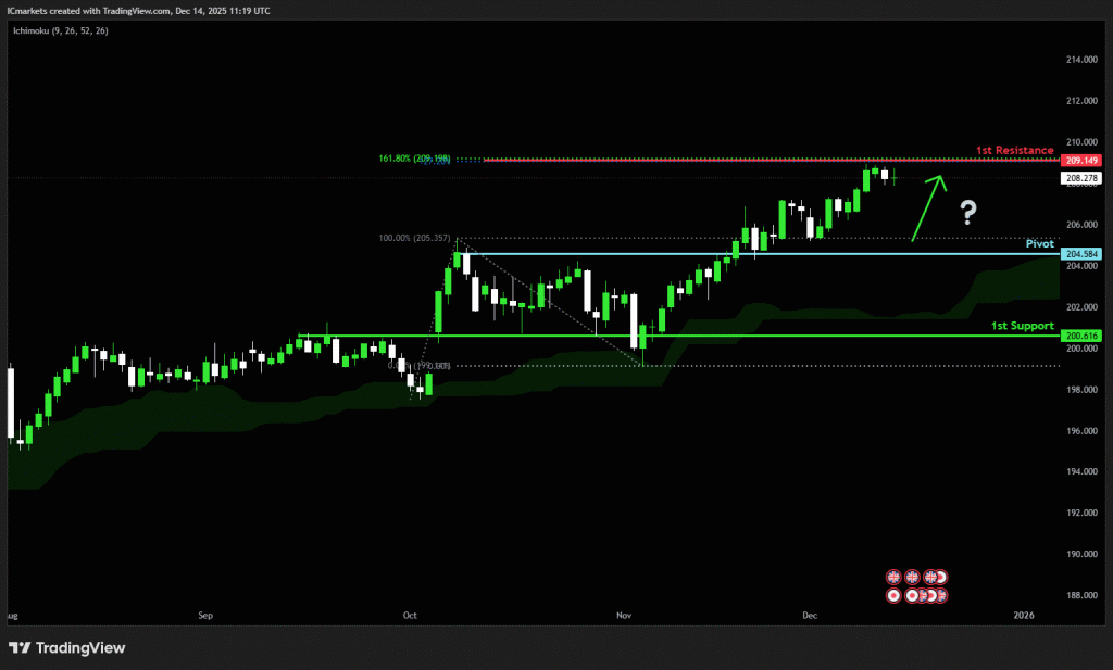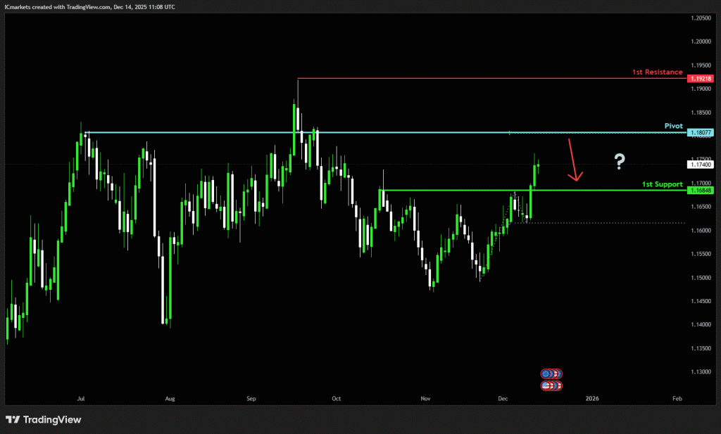 The price could see a short-term pullback toward the pivot before rising again toward the 1st resistance.