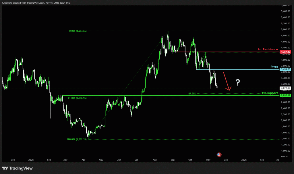 Supporting reasons: Identified as an overlap resistance that aligns with the 161.8% Fibonacci extension. This level represents the next key area where upward movement could be capped amid increased selling pressure