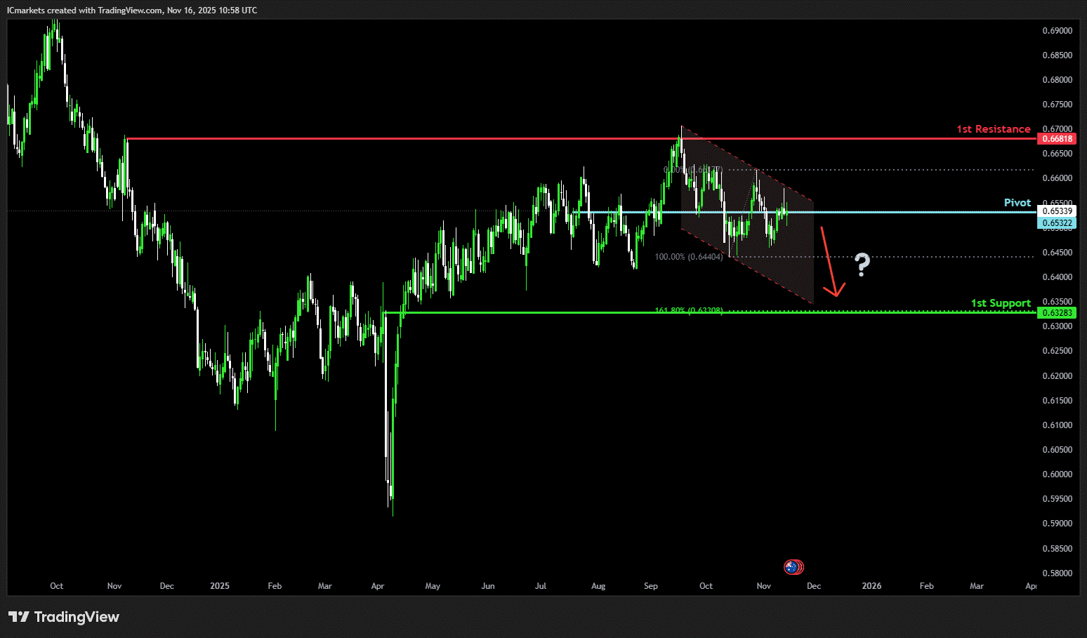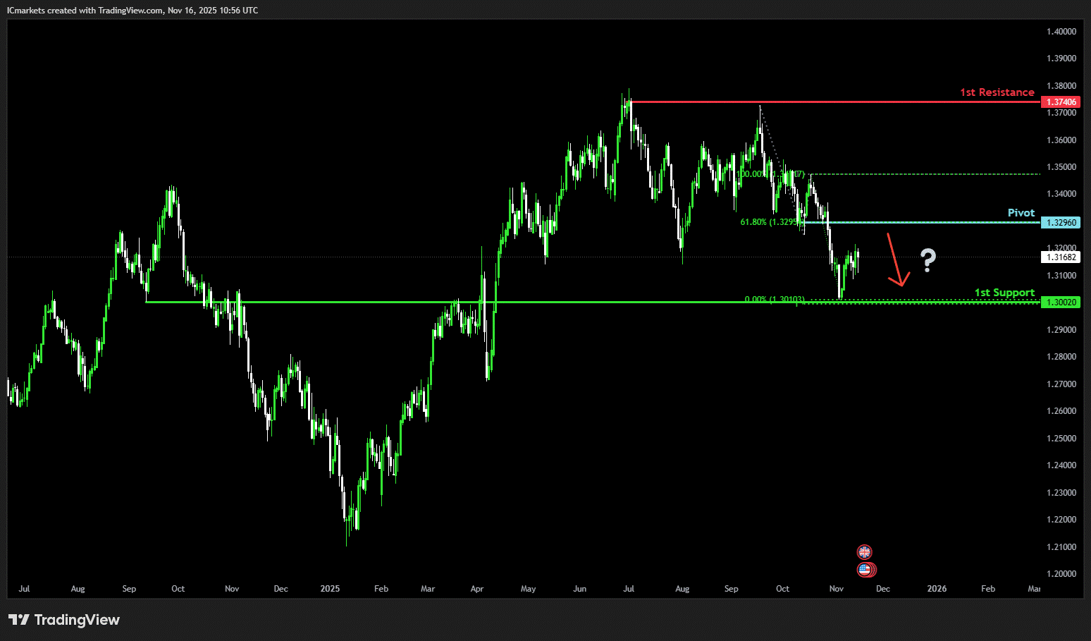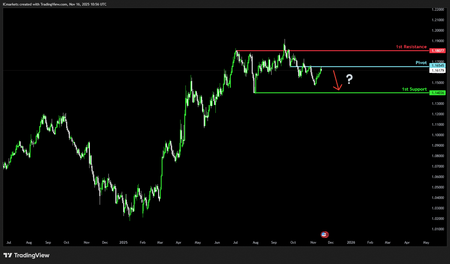 The price could see a short-term pullback toward the pivot before continuing its bearish move down toward the 1st support.