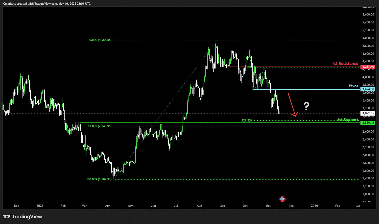 Supporting reasons: Identified as an overlap resistance that aligns with the 161.8% Fibonacci extension. This level represents the next key area where upward movement could be capped amid increased selling pressure