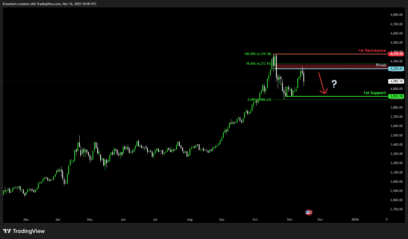 Supporting reasons: Identified as a pullback resistance that aligns closely with the 78.6% Fibonacci retracement, where selling pressures could intensify and potentially cap any upward retracement.