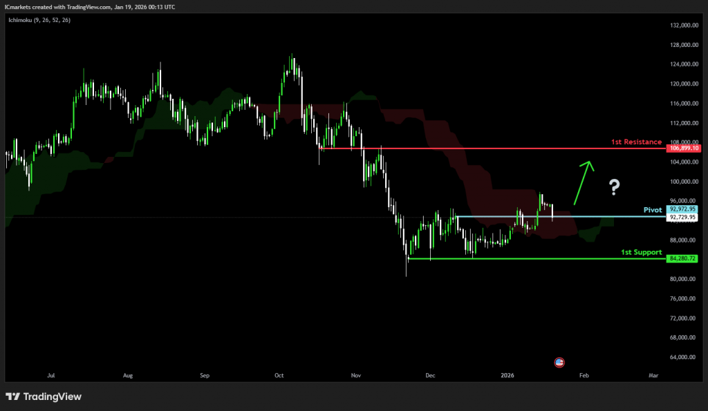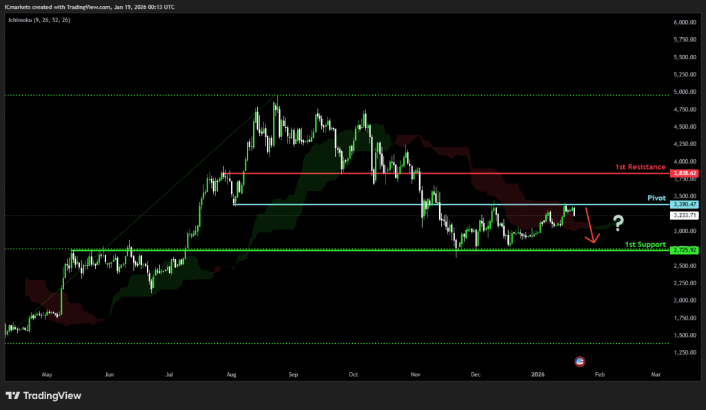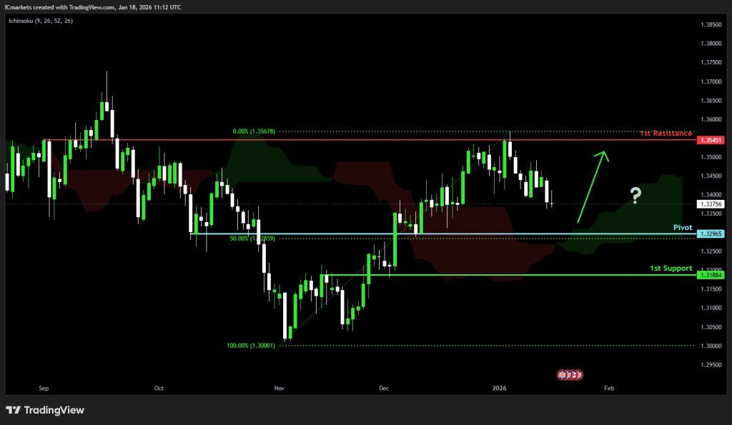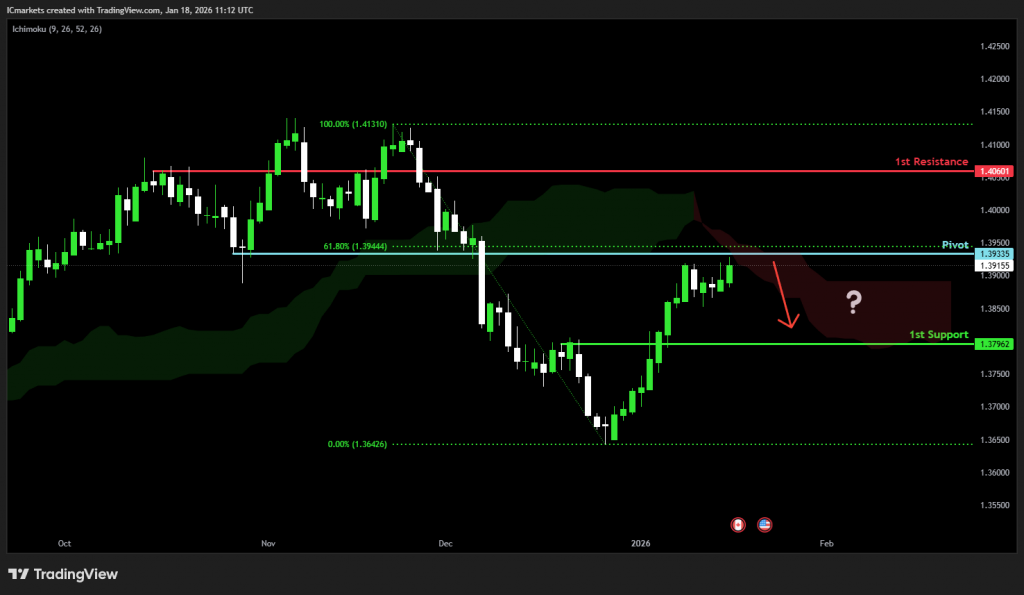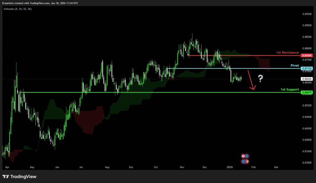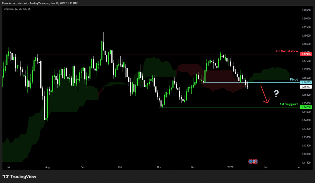 The price could see a short-term pullback toward the pivot before continuing its bearish move down toward the 1st support.