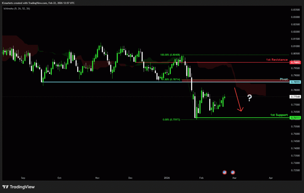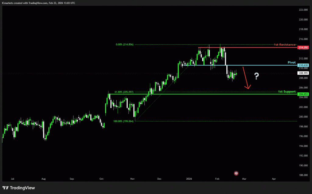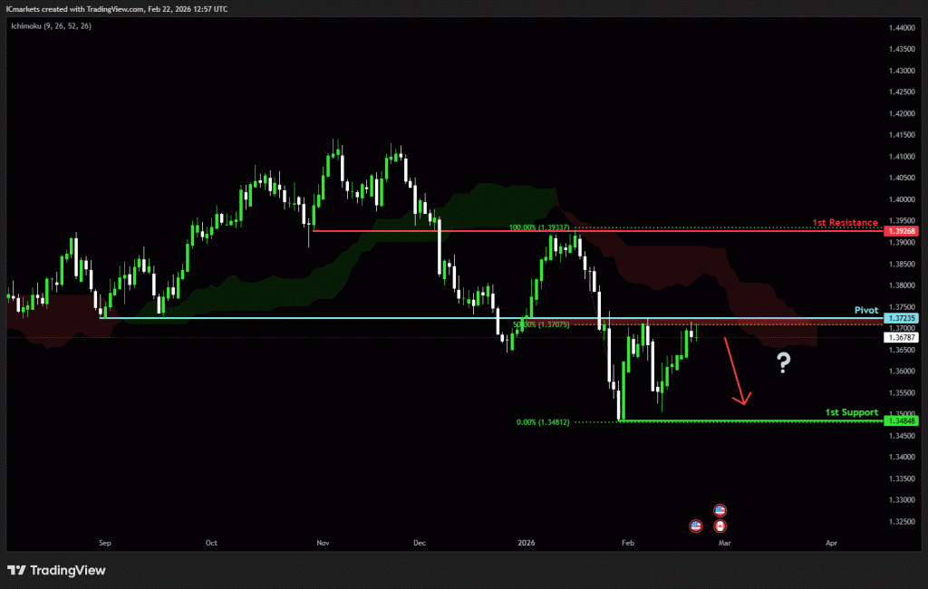 The price could see a short-term pullback toward the pivot before continuing its bearish move down toward the 1st support.
