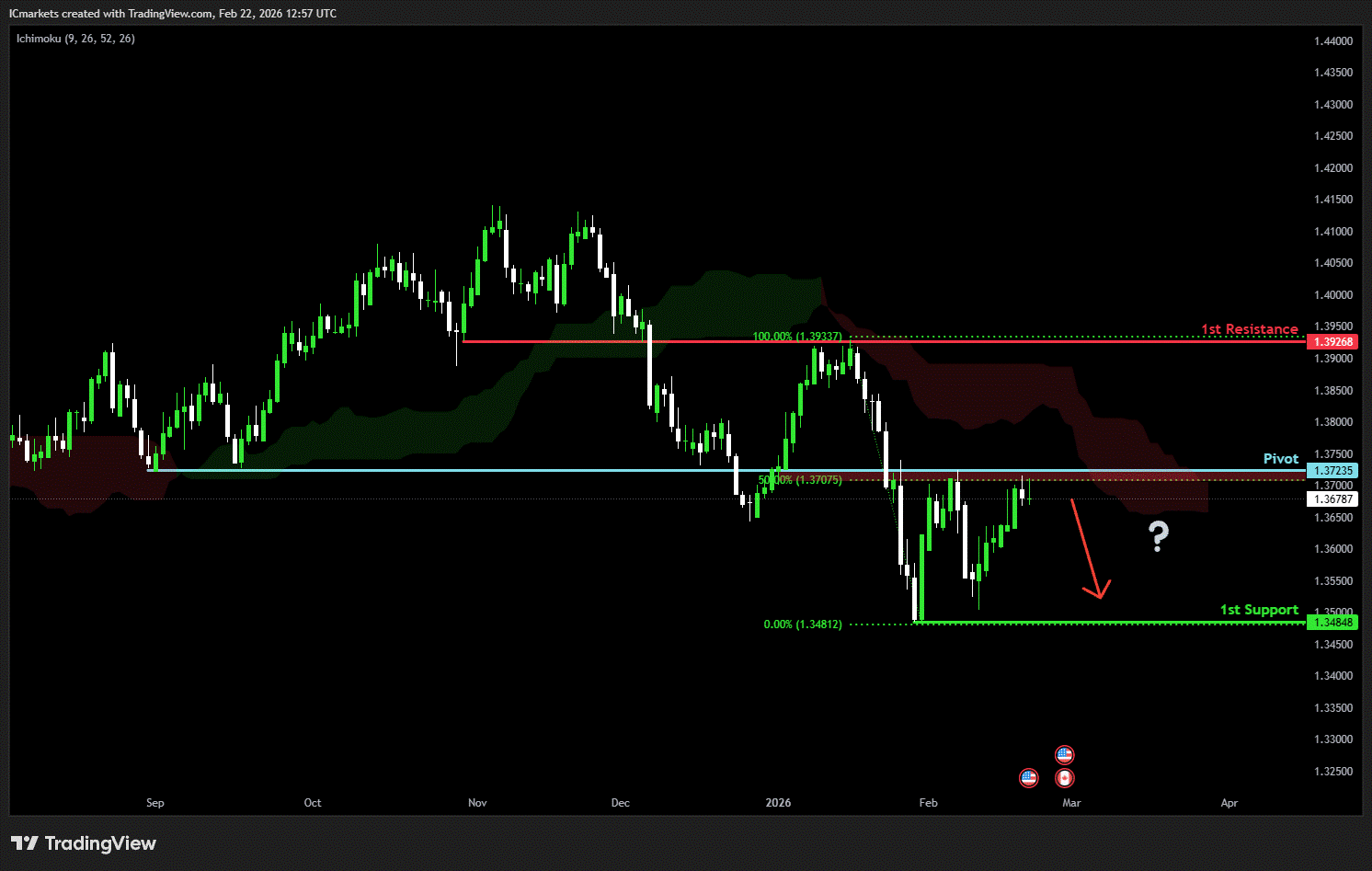 The price could see a short-term pullback toward the pivot before continuing its bearish move down toward the 1st support.