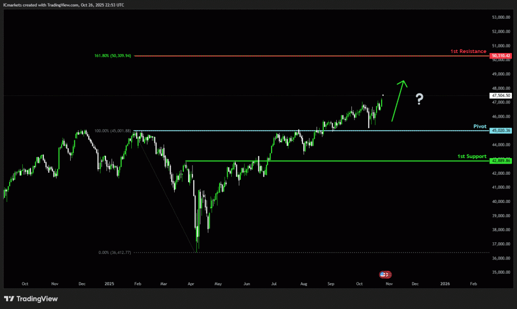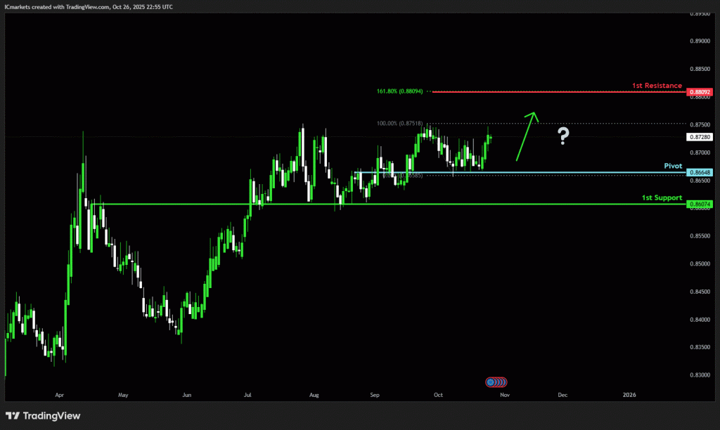 The price has already bounced off the pivot and may continue its bullish move toward the 1st resistance
