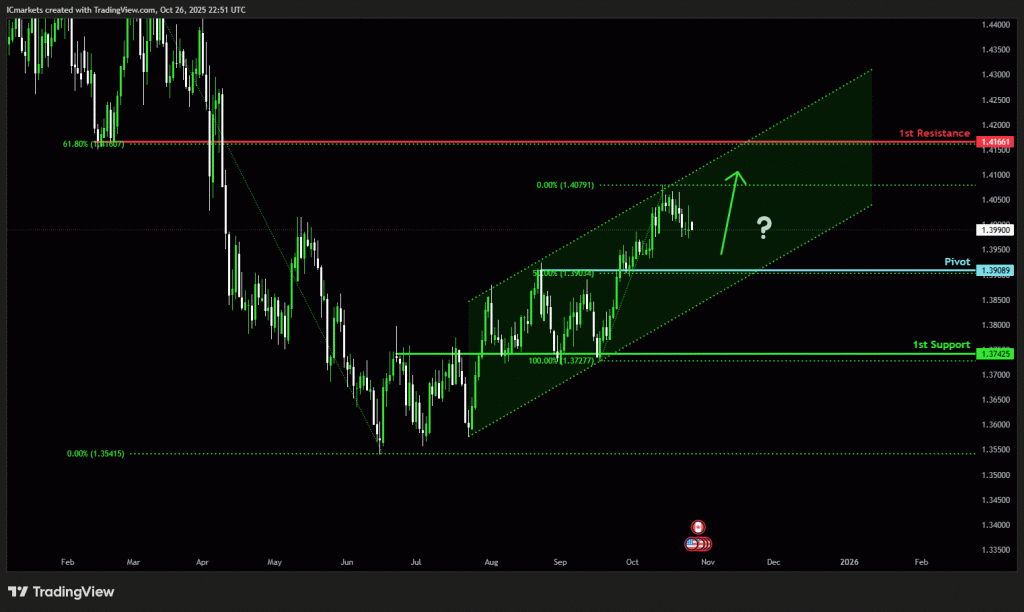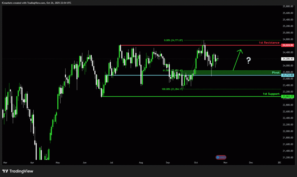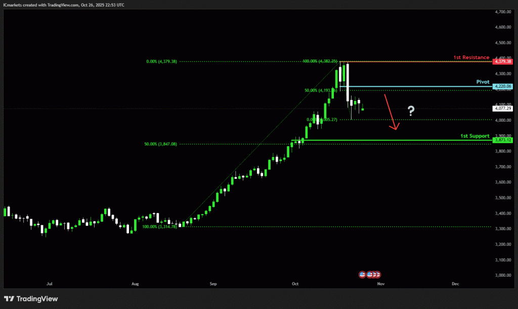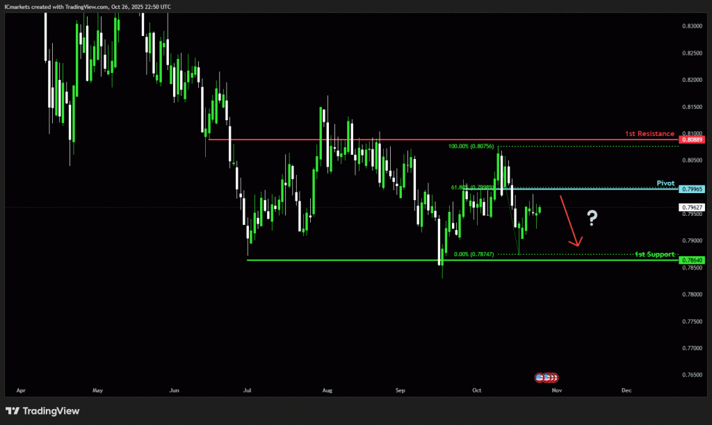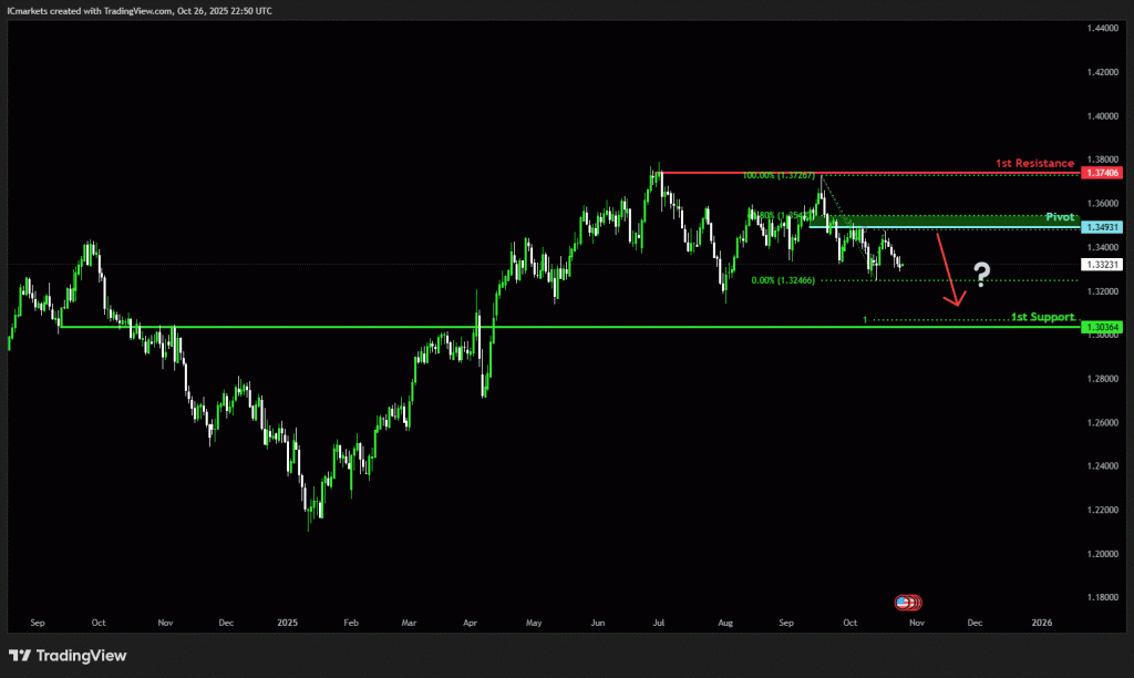 The price could see a short-term pullback toward the pivot before continuing its bearish move down toward the 1st support.