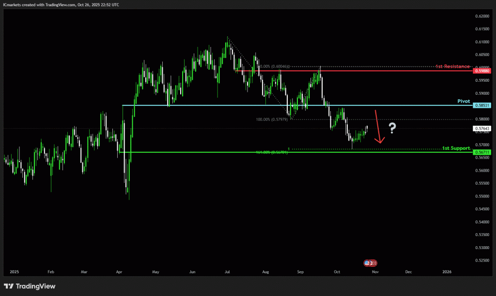 Supporting reasons: Identified as an overlap resistance that aligns closely with the 61.8% Fibonacci retracement, where selling pressures could intensify and potentially cap any upward retracement