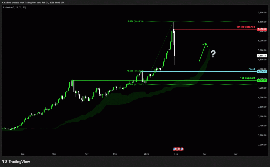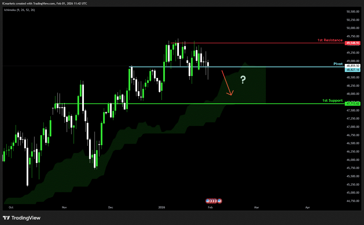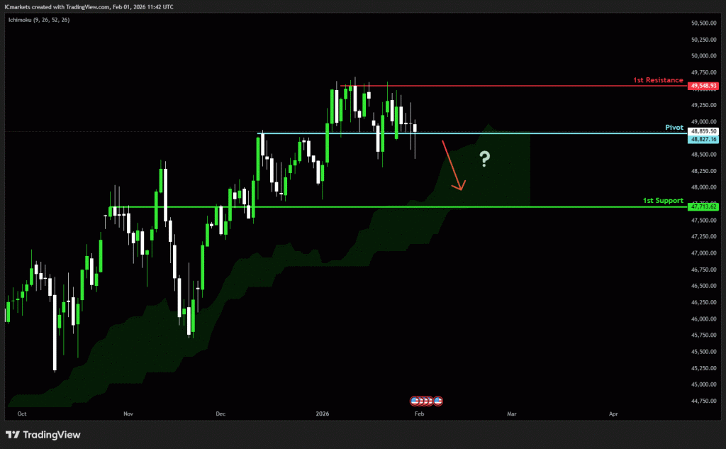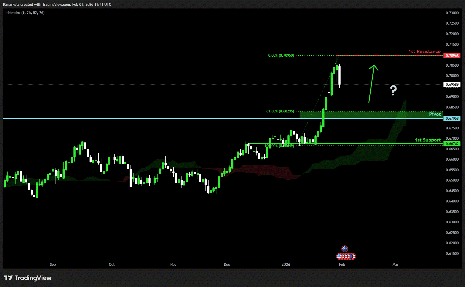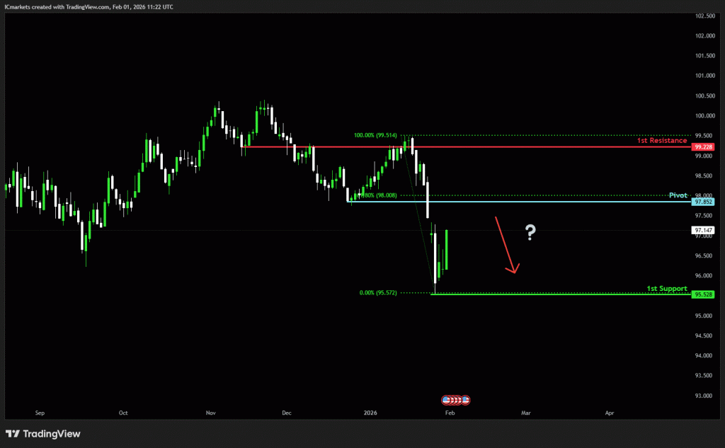 The price could see a short-term pullback toward the pivot before continuing its bearish move down toward the 1st support.