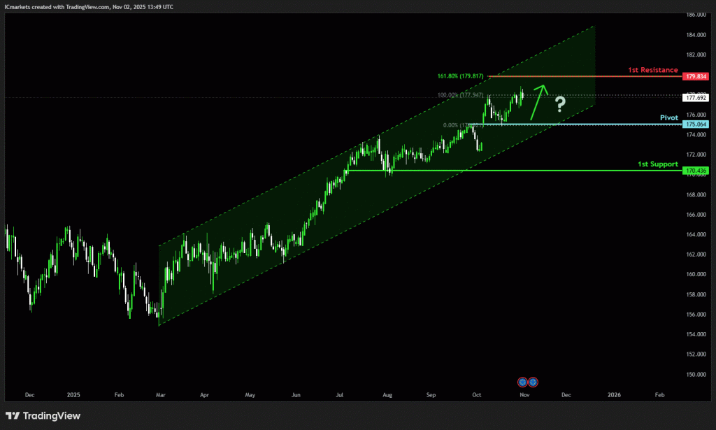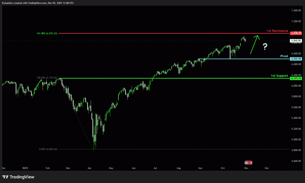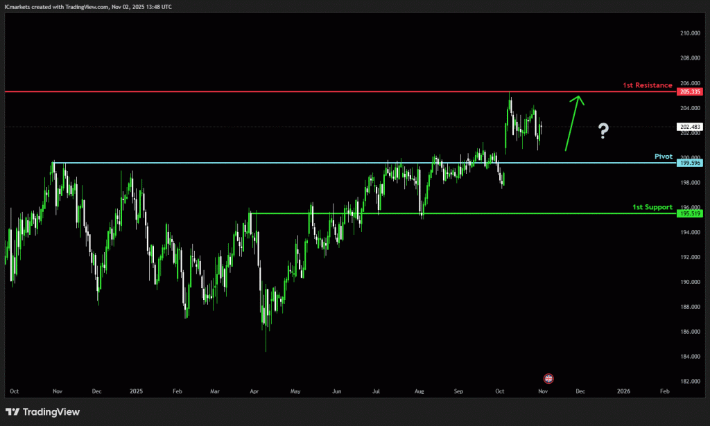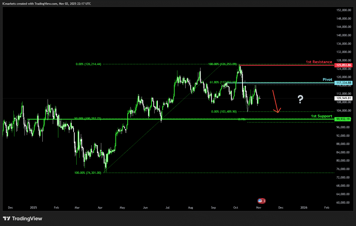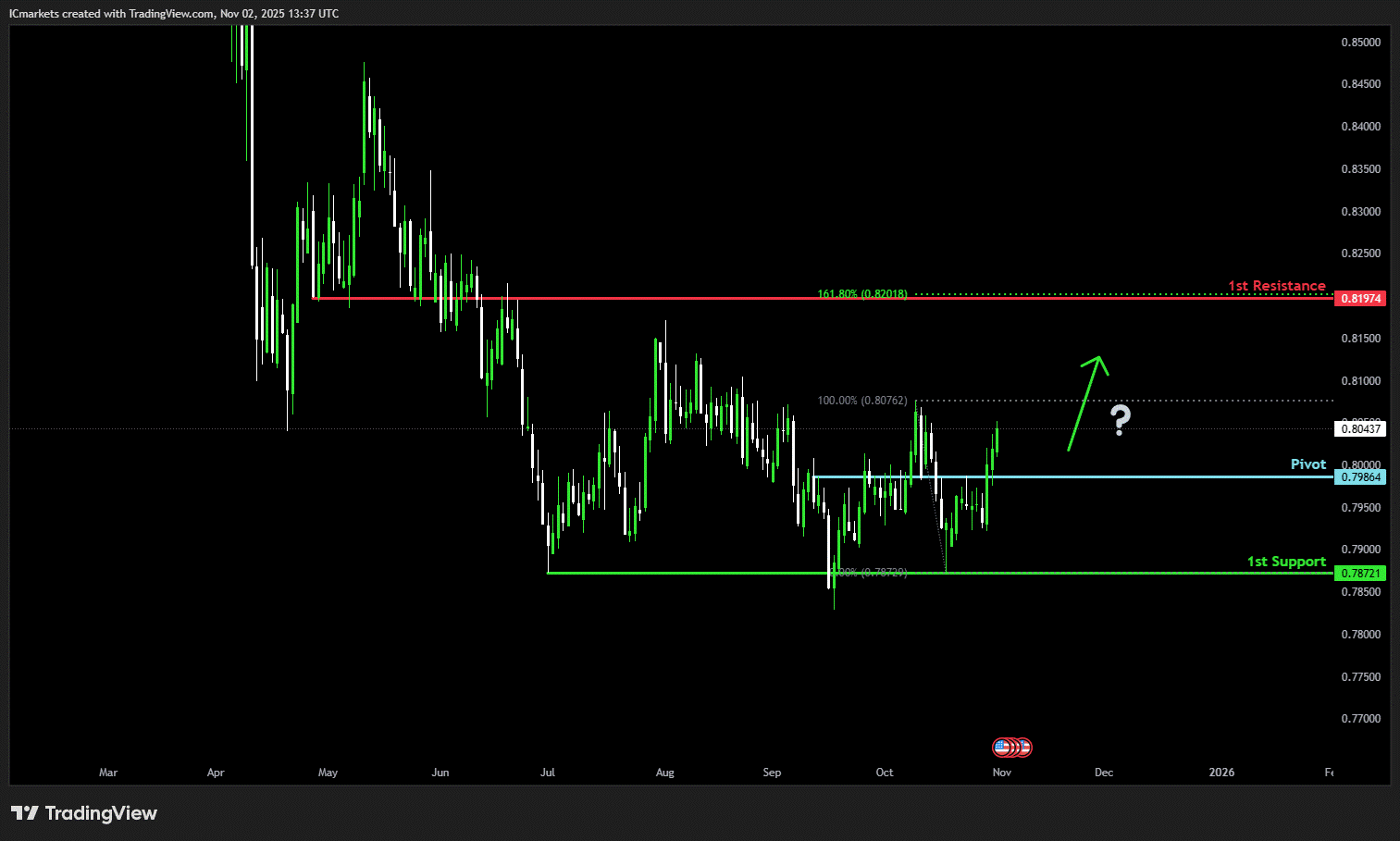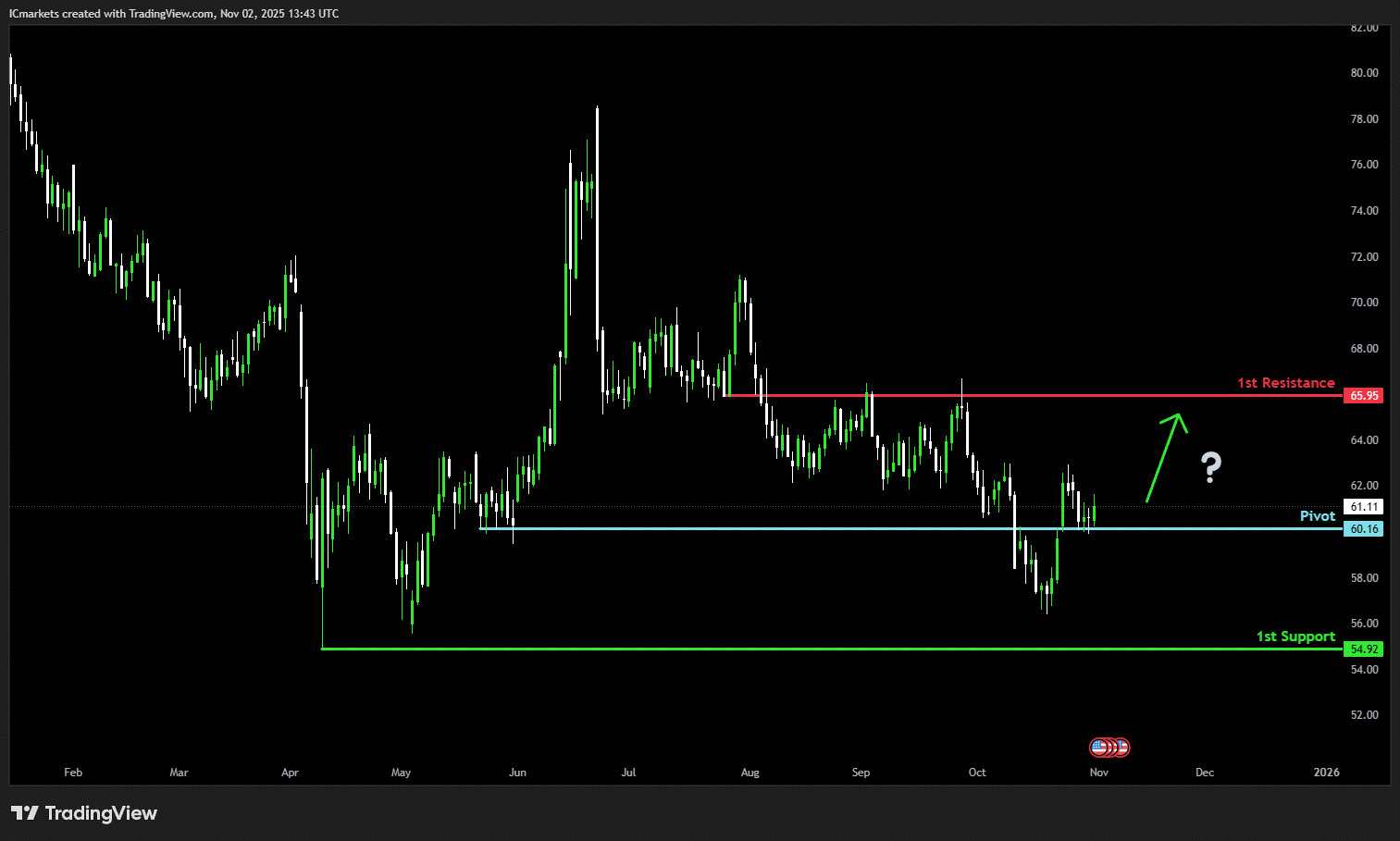 The price could see a short-term pullback toward the pivot before continuing its bearish move down toward the 1st support.