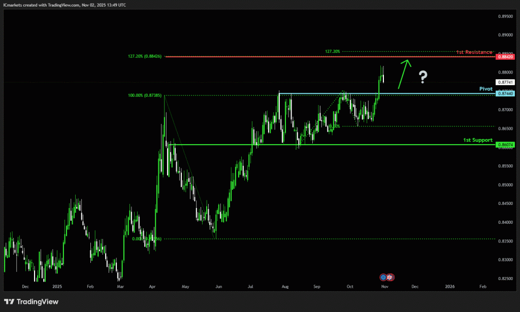 The price could make a short-term pullback toward the pivot before rising again toward the 1st resistance
