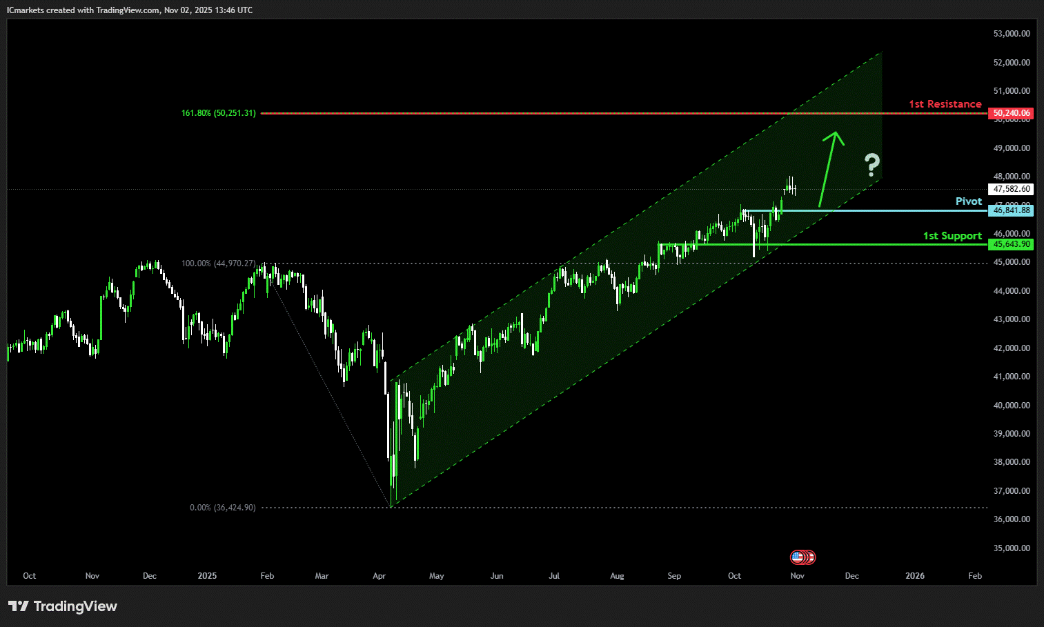 The price has already bounced off the pivot and may continue its bullish move toward the 1st resistance