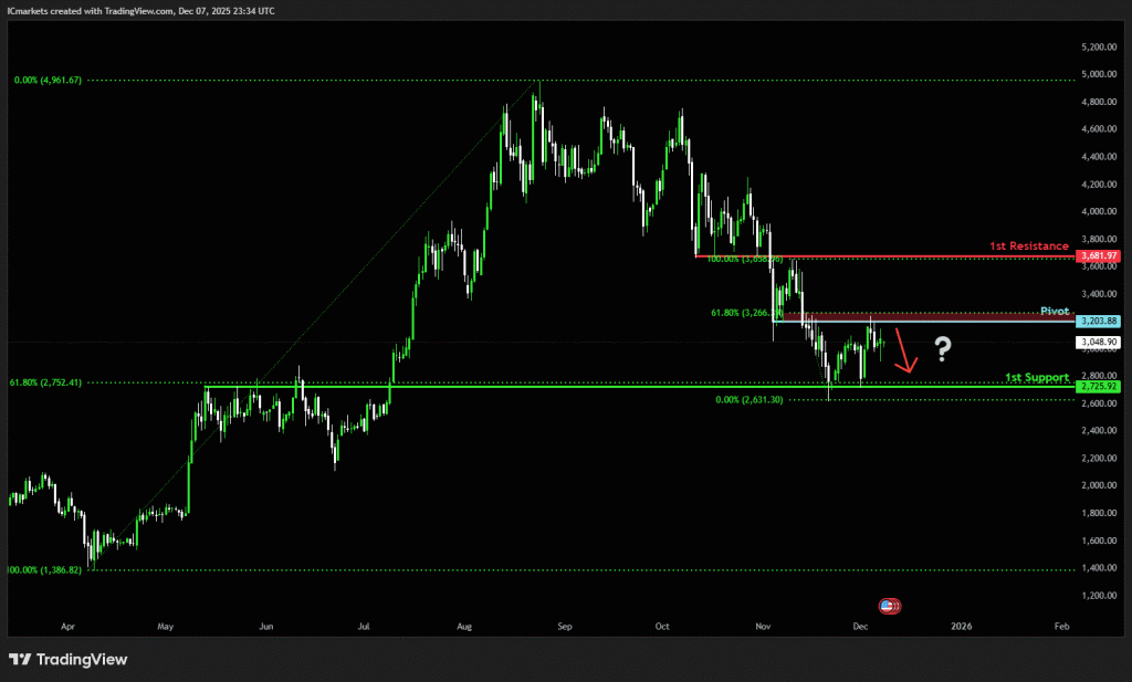 Supporting reasons: Identified as an overlap support that aligns with the 61.8% Fibonacci retracement, where renewed buying pressure could emerge to push the price higher.