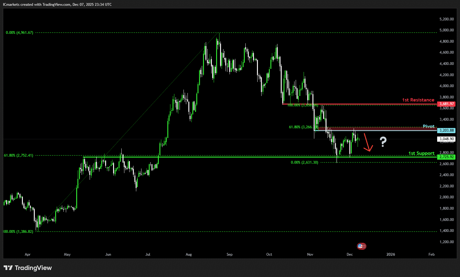 Supporting reasons: Identified as an overlap support that aligns with the 61.8% Fibonacci retracement, where renewed buying pressure could emerge to push the price higher.