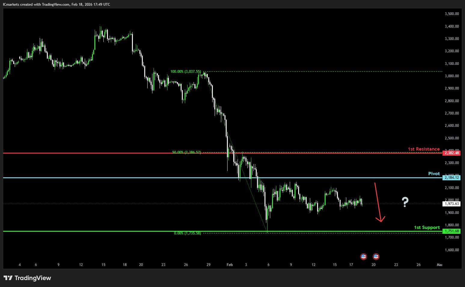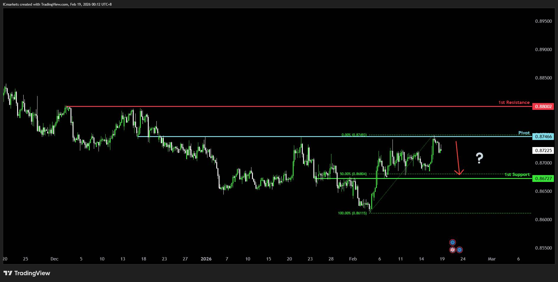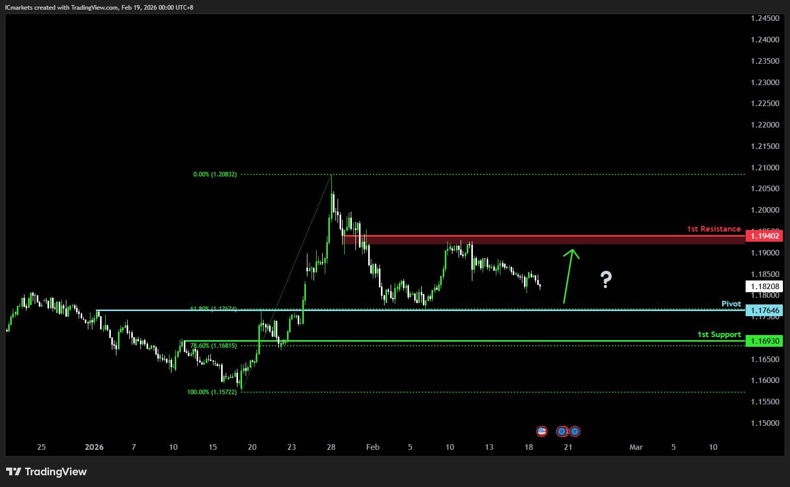 Supporting reasons: Identified as a pullback support that aligns with the 61.8% Fibonacci retracement, where renewed buying pressure could emerge and push the price to the 1st resistance.