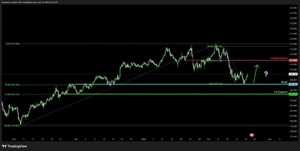 The price could see a short-term pullback toward the pivot before rising again toward the 1st resistance.