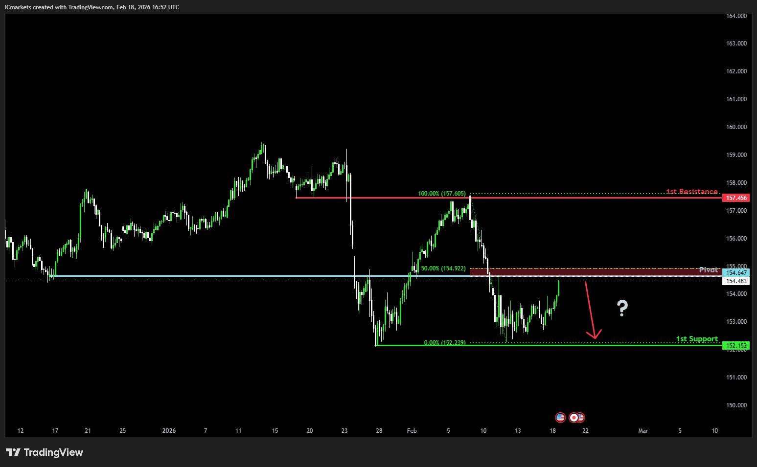 1st resistance: 157.45