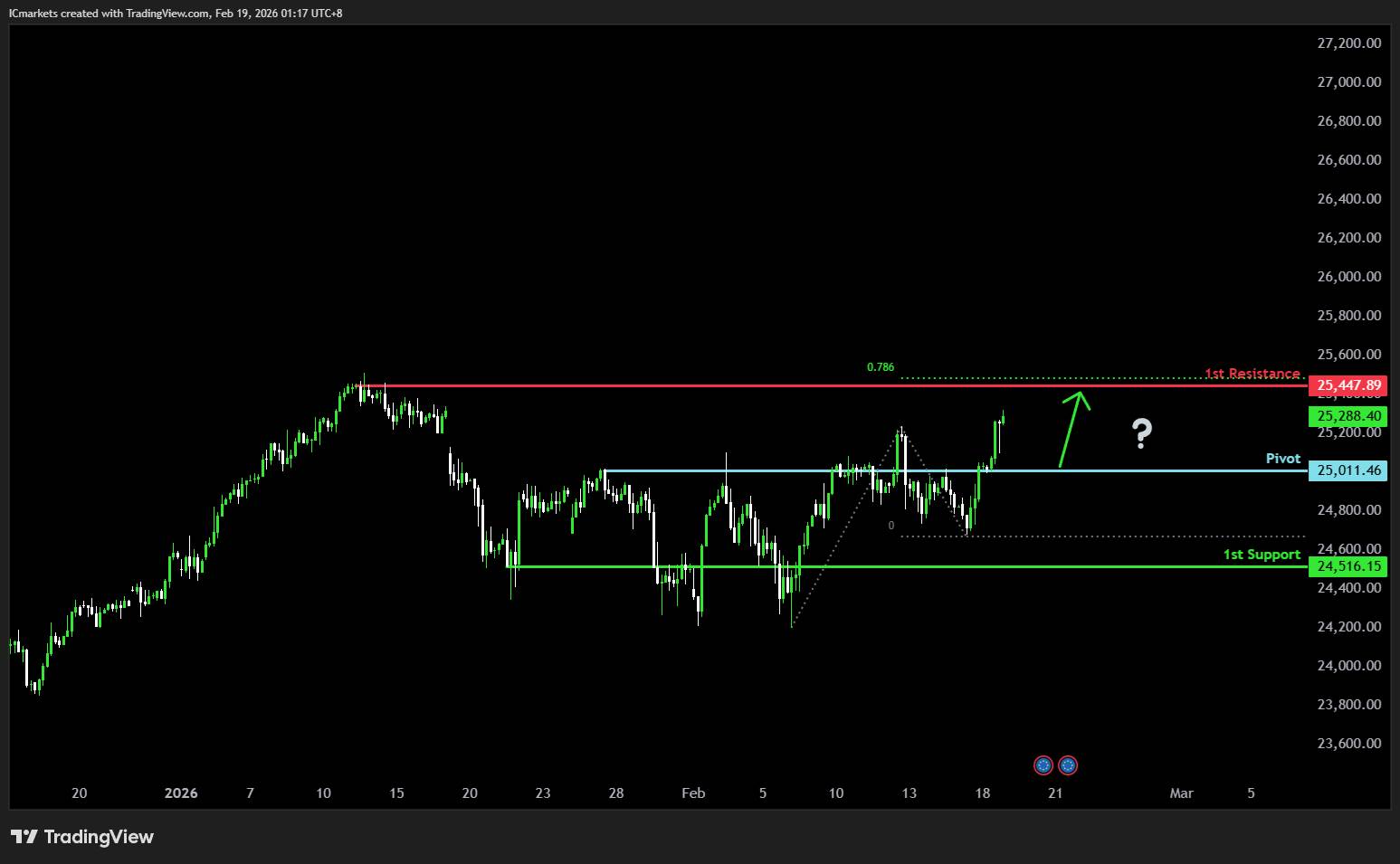 1st resistance: 25,447.89