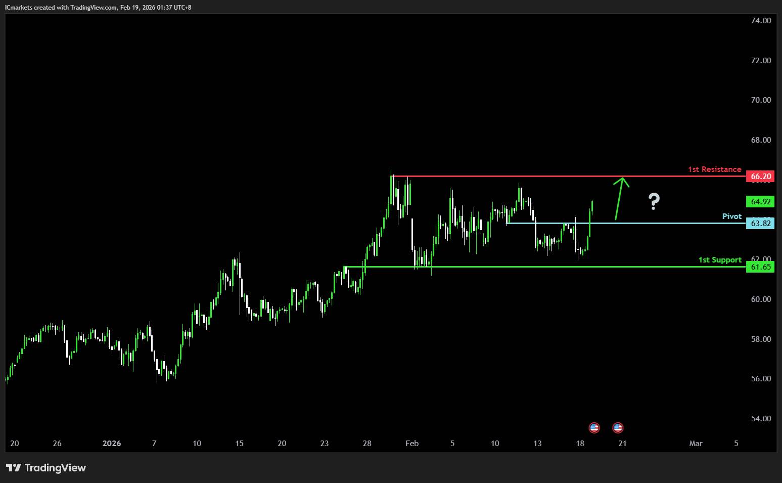 The price could see a short-term pullback toward the pivot and could make a bullish move toward the 1st resistance.