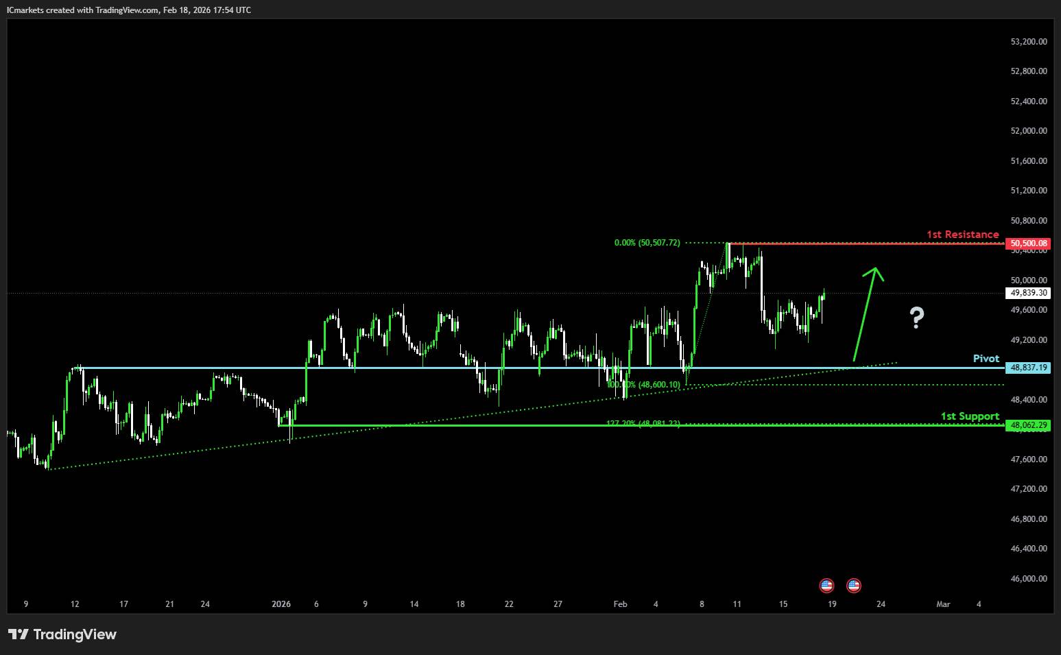 1st resistance: 50,500.08