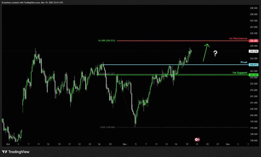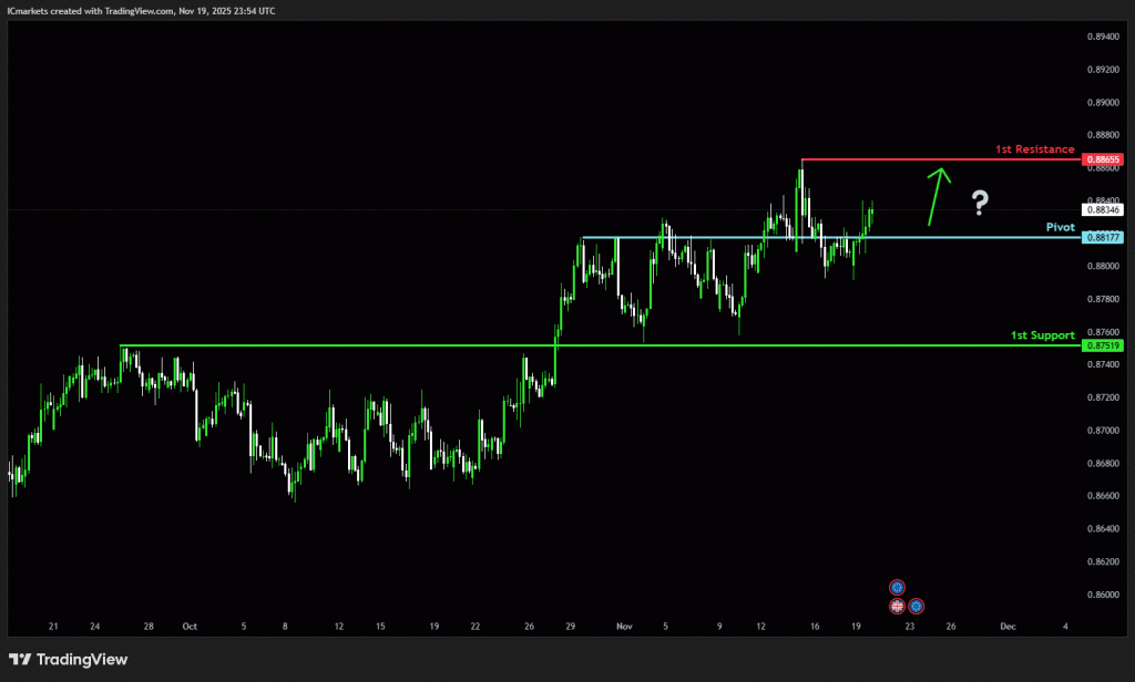 The price could see a short-term pullback toward the pivot before rising again toward the 1st resistance.