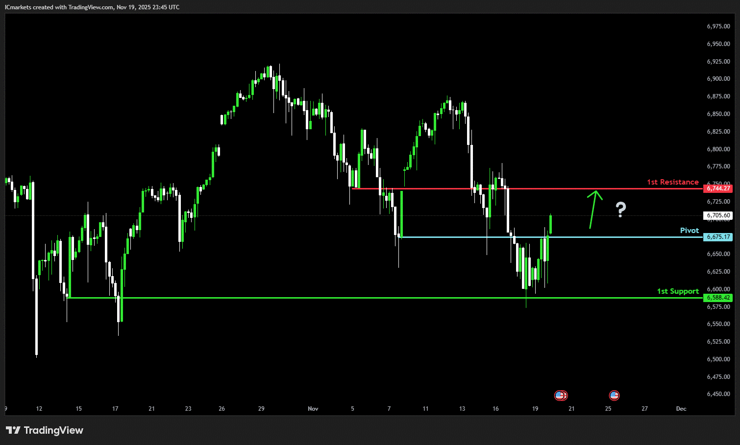 1st resistance: 6,744.27