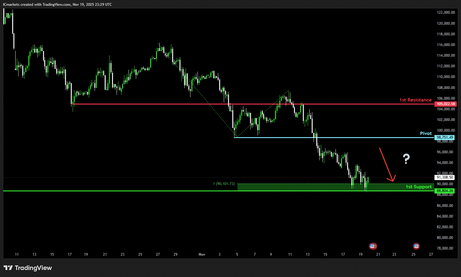 1st support: 88,804.26