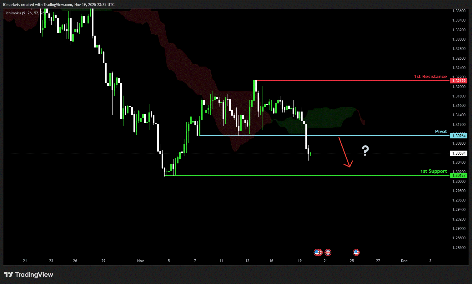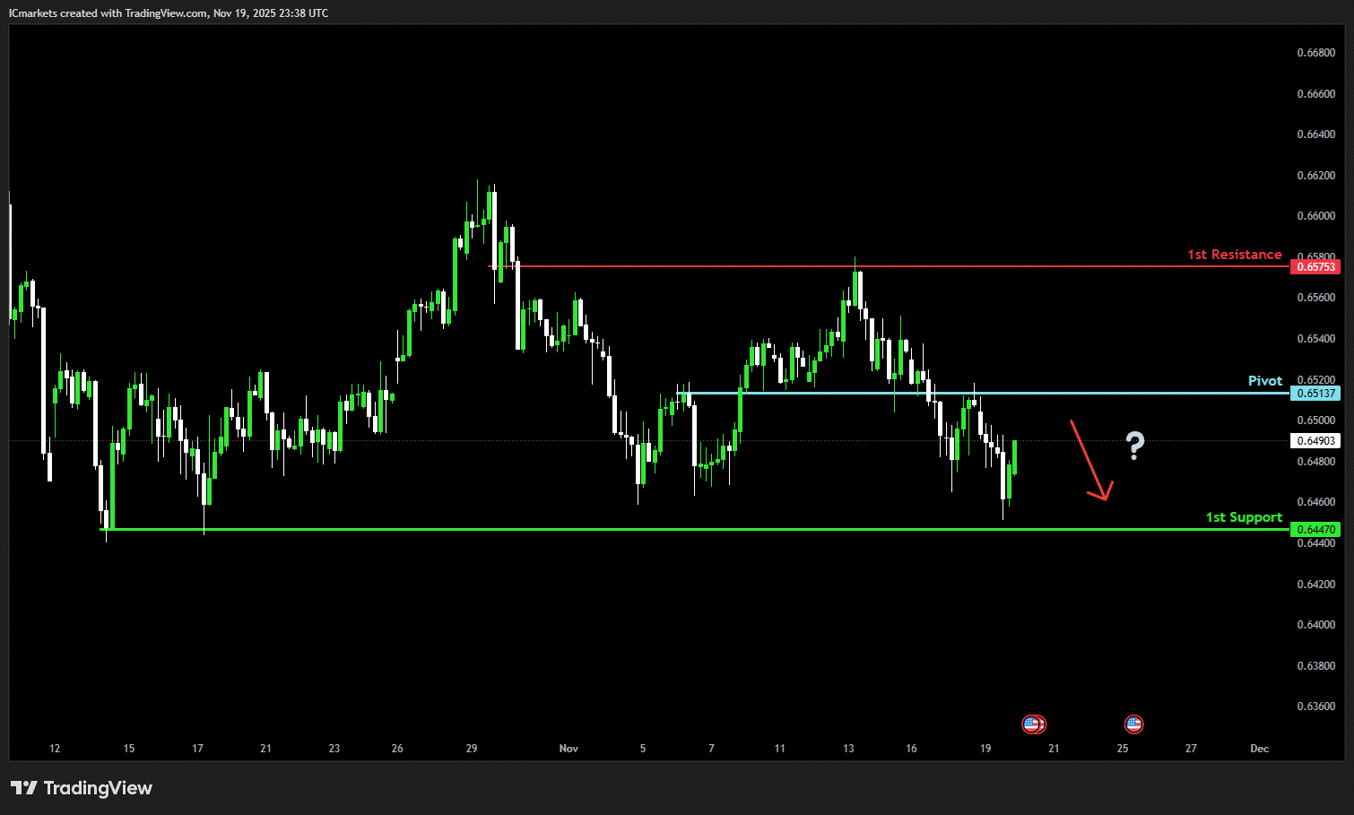 The price could see a short-term pullback toward the pivot before continuing its bearish move down toward the 1st support.