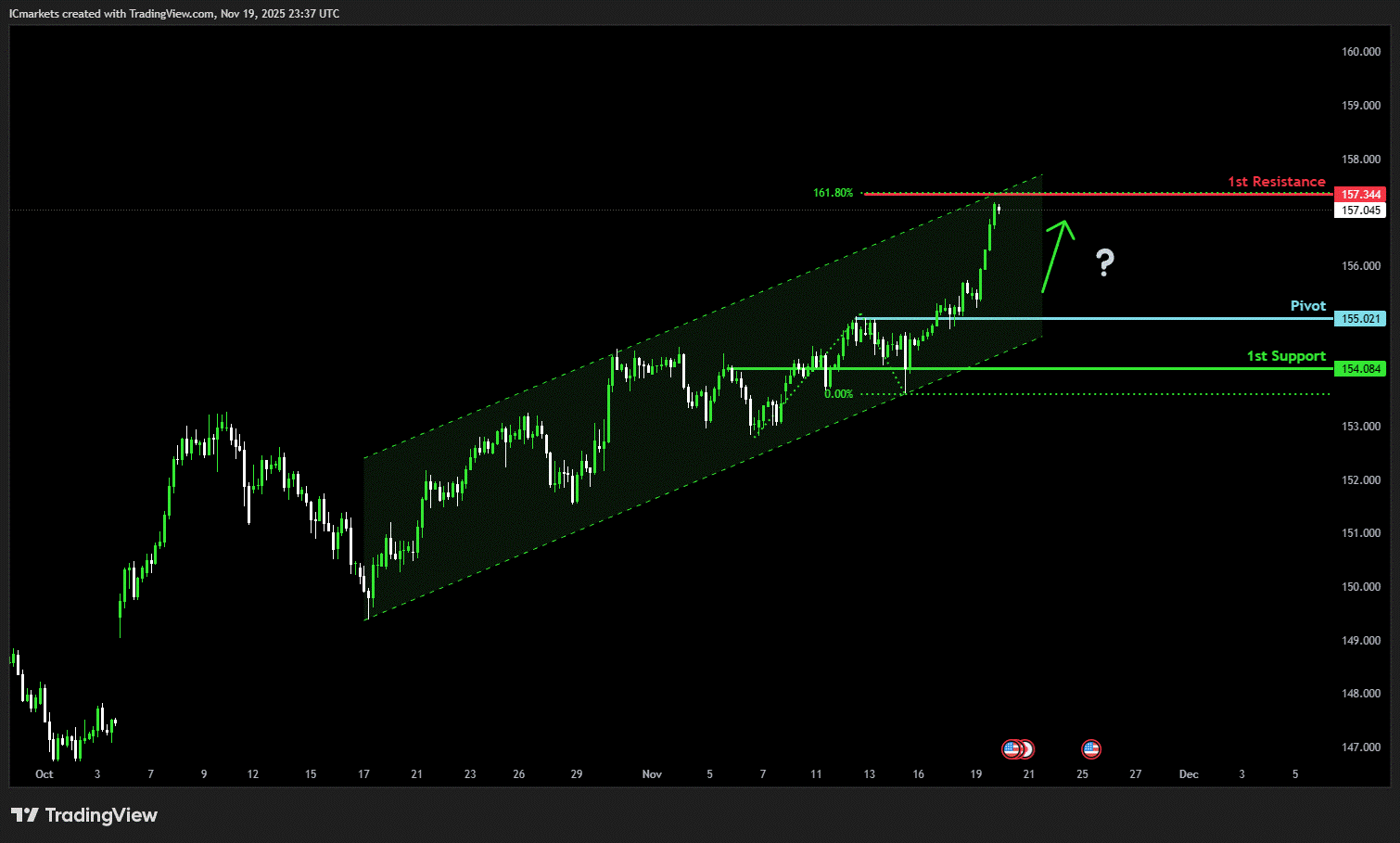 1st resistance: 157.34