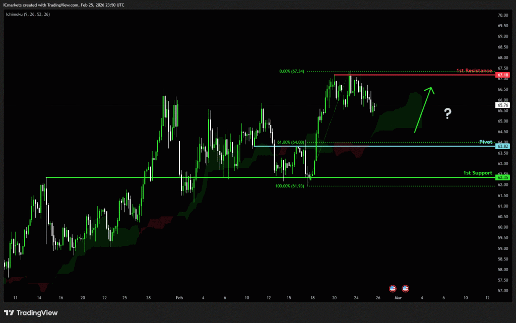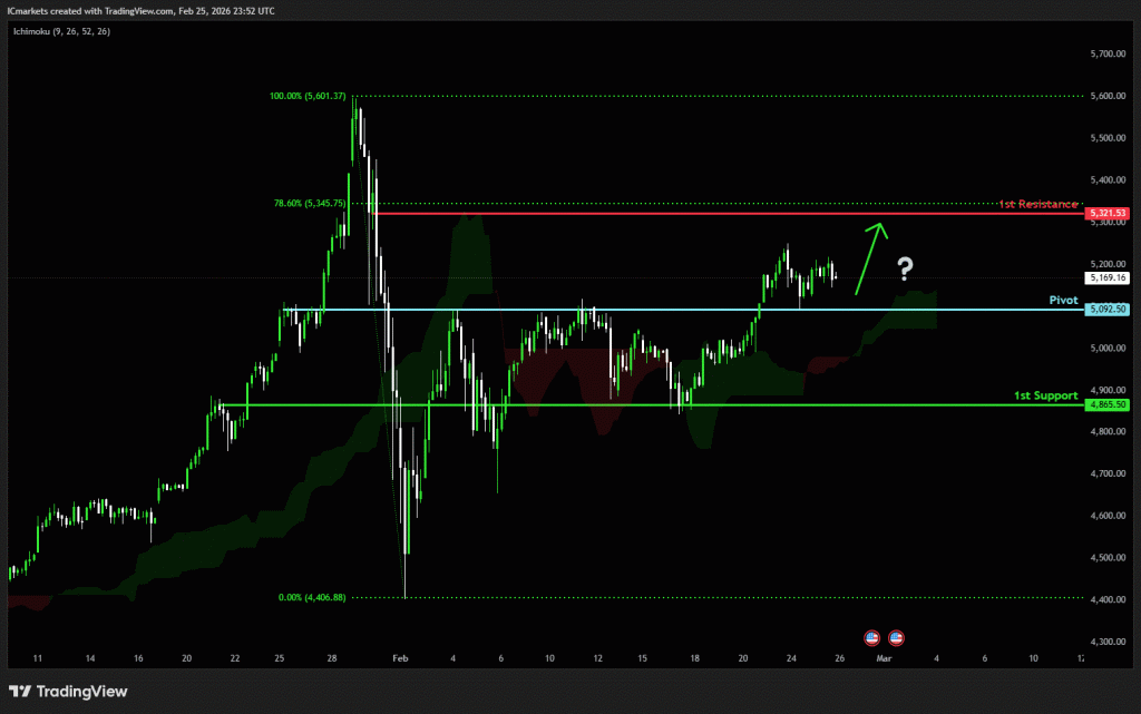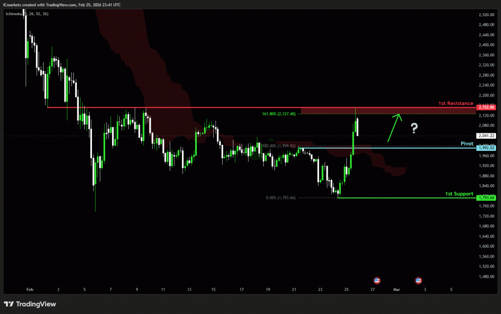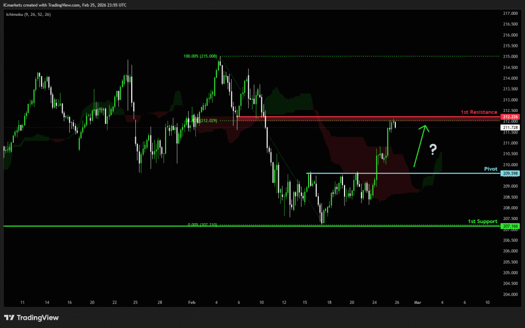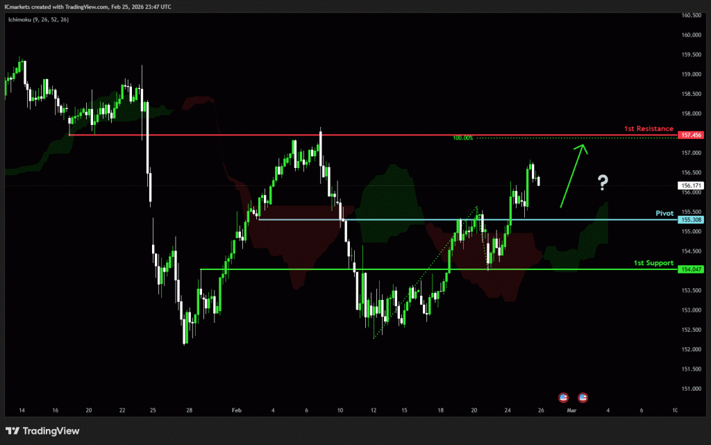 The price could see a short-term pullback toward the pivot before rising again toward the 1st resistance.