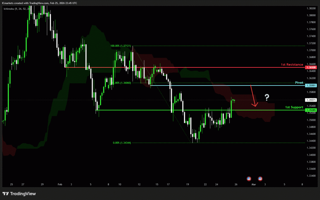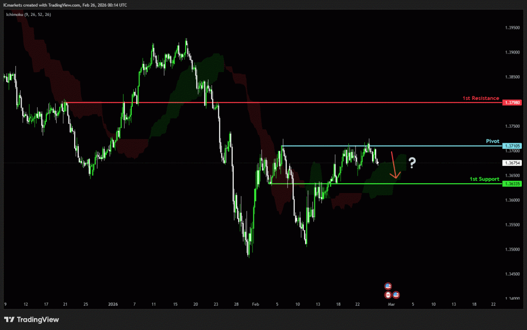 The price could see a short-term pullback toward the pivot before continuing its bearish move down toward the 1st support.