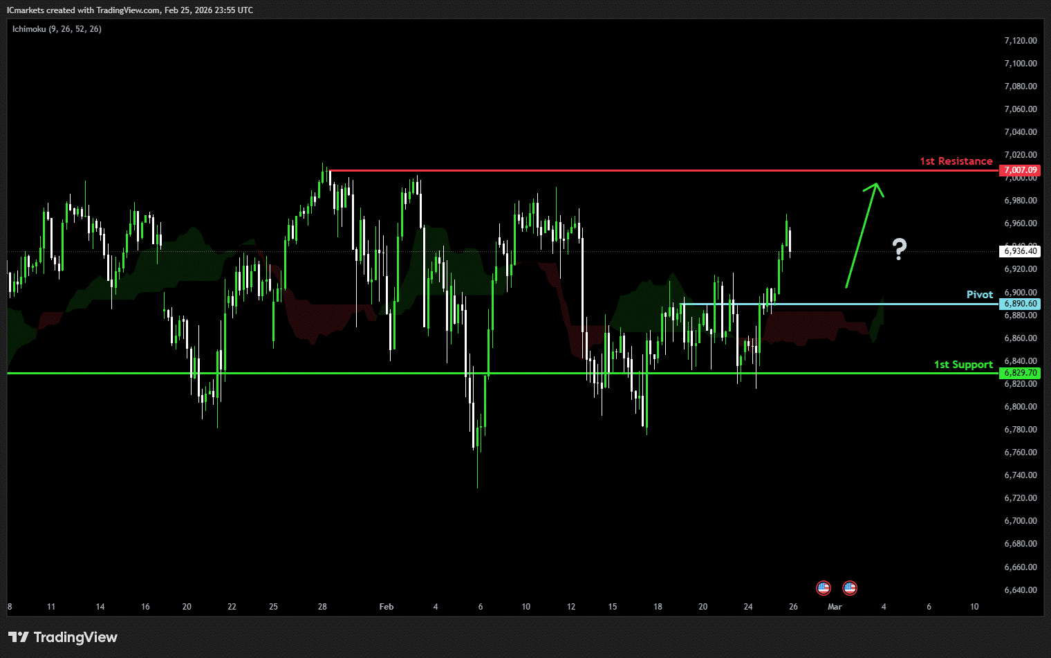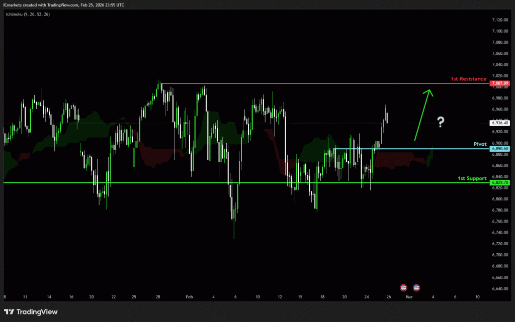 1st resistance: 7,007.09