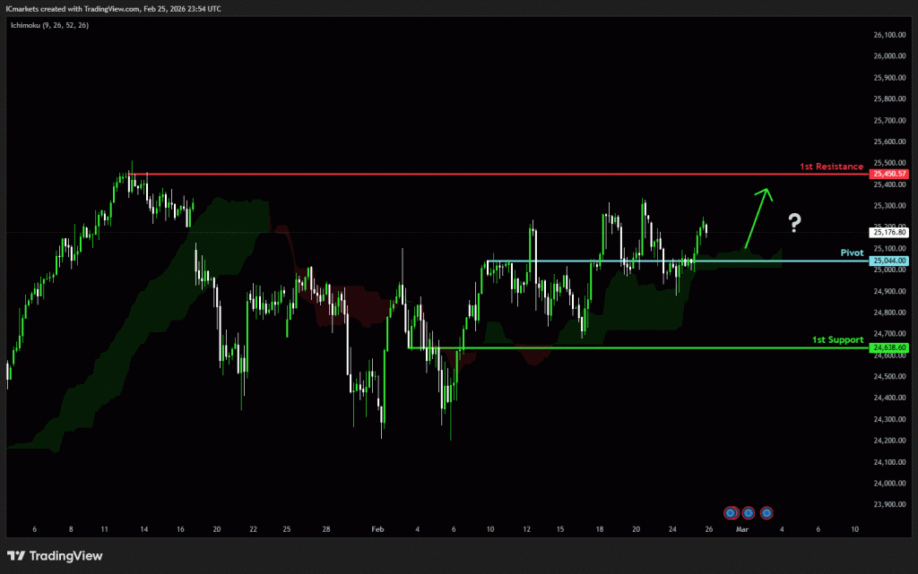 1st resistance: 25,450.57