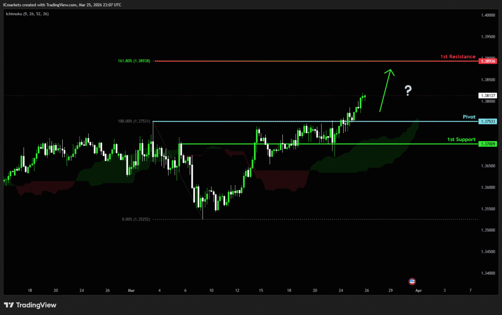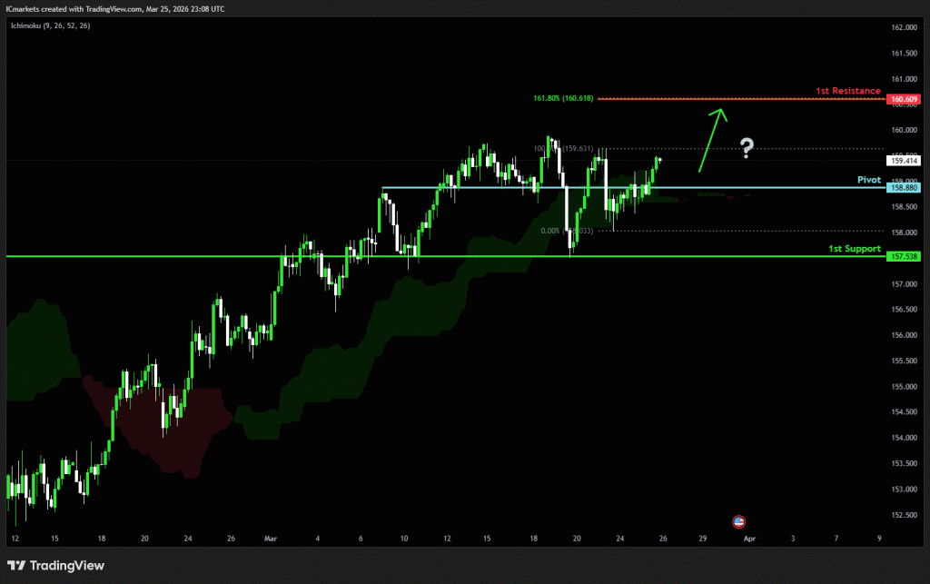 The price could see a short-term pullback toward the pivot before rising again toward the 1st resistance.