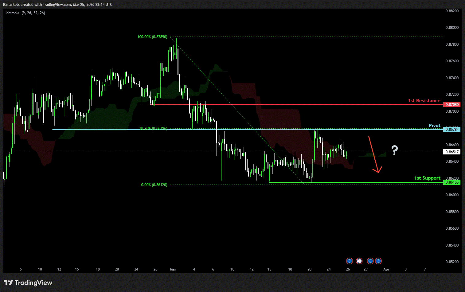 1st resistance: 0.8708