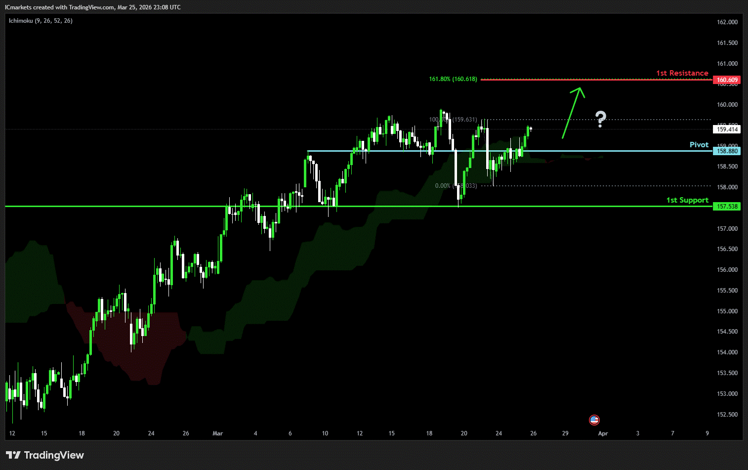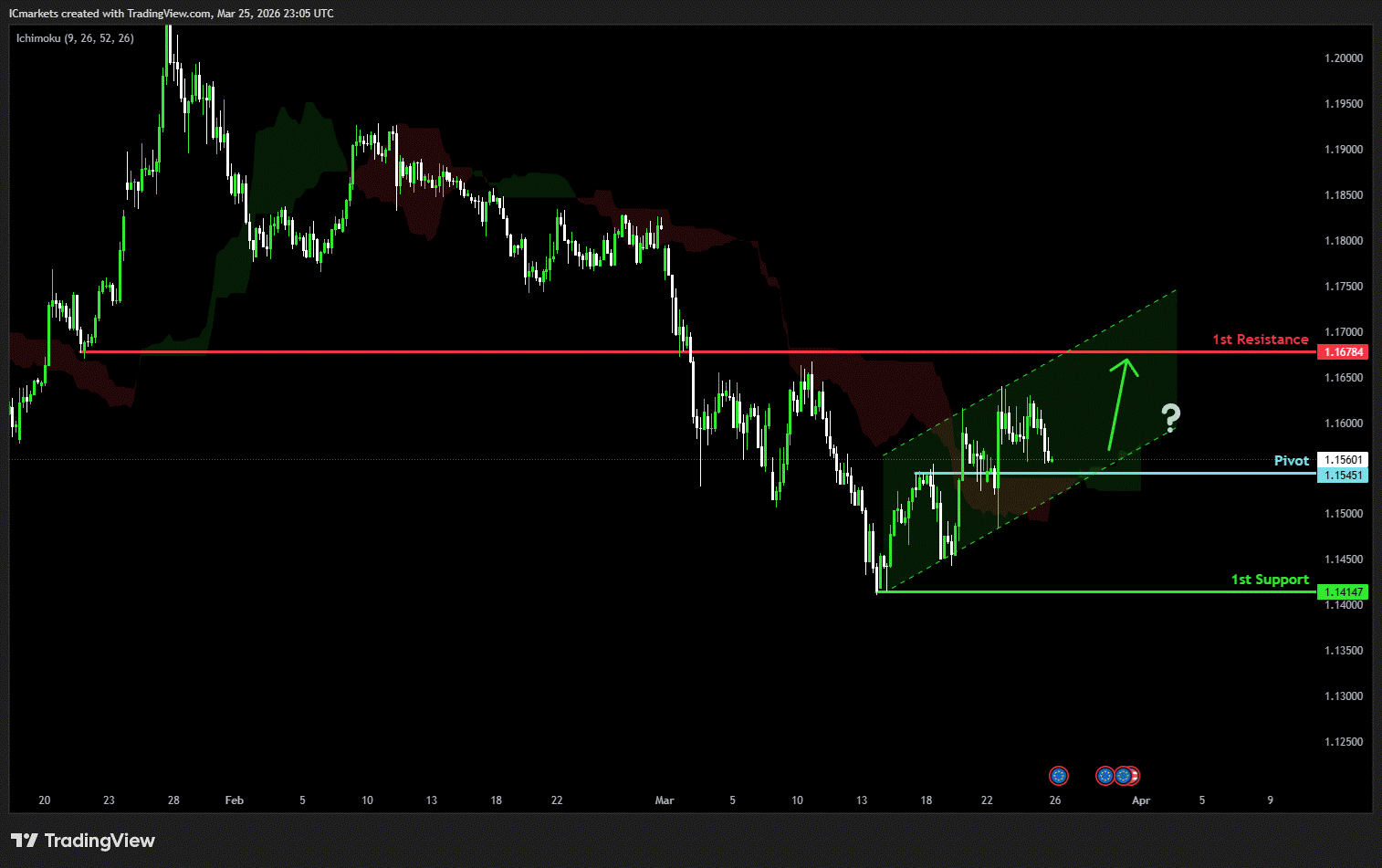 The price could see a short-term pullback toward the pivot before rising again toward the 1st resistance.