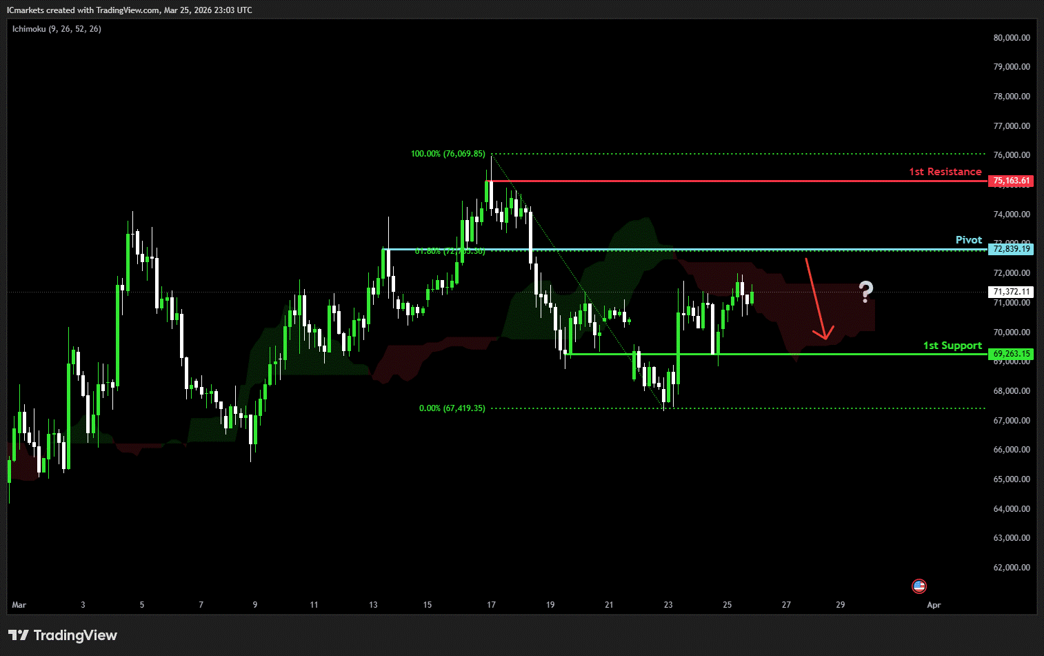 1st support: 69,263.15